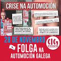Finalmente, anunciou que a central sindical vai continuar coas mobilizacións para poñer enriba da mesa a necesidade de contar cunha política industrial de país que garanta un sector da automoción con futuro e cunhas condicións laborais dignas. Política industrial da que carece a Xunta, “e que o único que fai é subvencionar as empresa, en definitiva o capital, deixando as persoas traballadoras en segundo plano”, tal e como censurou o secretario nacional da CIG-Industria, Marcos Conde.