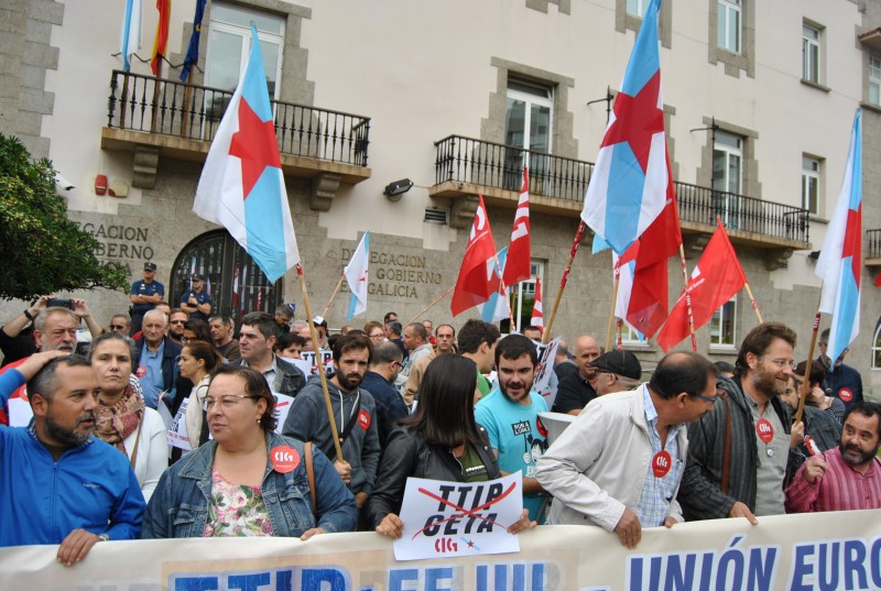 Un obxectivo moi afastado das bondades que se nos pretenden vender: creación de postos de traballo, dinamismo comercial e un incremento das exportacións. Mais, fronte a esta visión positiva, o CETA (considerado o paso previo a imposición do TTIP e o seu “cabalo de troia”-de aí a simboloxía que se podía ver na manifestación de Bruxelas-) favorece a desregulación en materia laboral, fomenta a privatización do público, introduce unha flexibilidade no eido da seguridade, a saúde pública e ambiental descoñecida para os estándares europeos, compromete seriamente a soberanía e limita as xa minguadas capacidades dos parlamentos dos diferentes estados da unión. É dicir, estes tratados constitúen na realidade unha agresión aos nosos dereitos máis elementais.