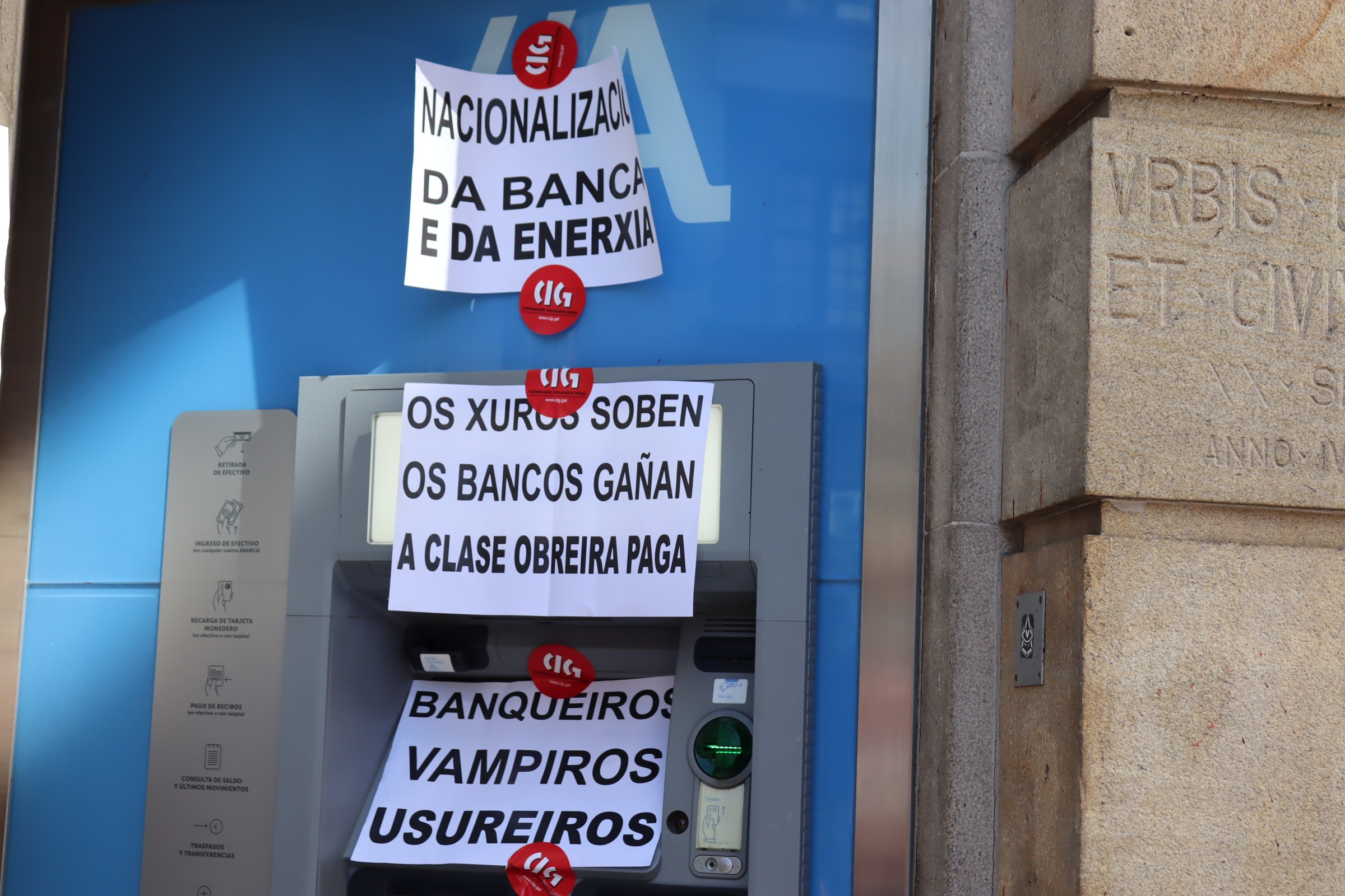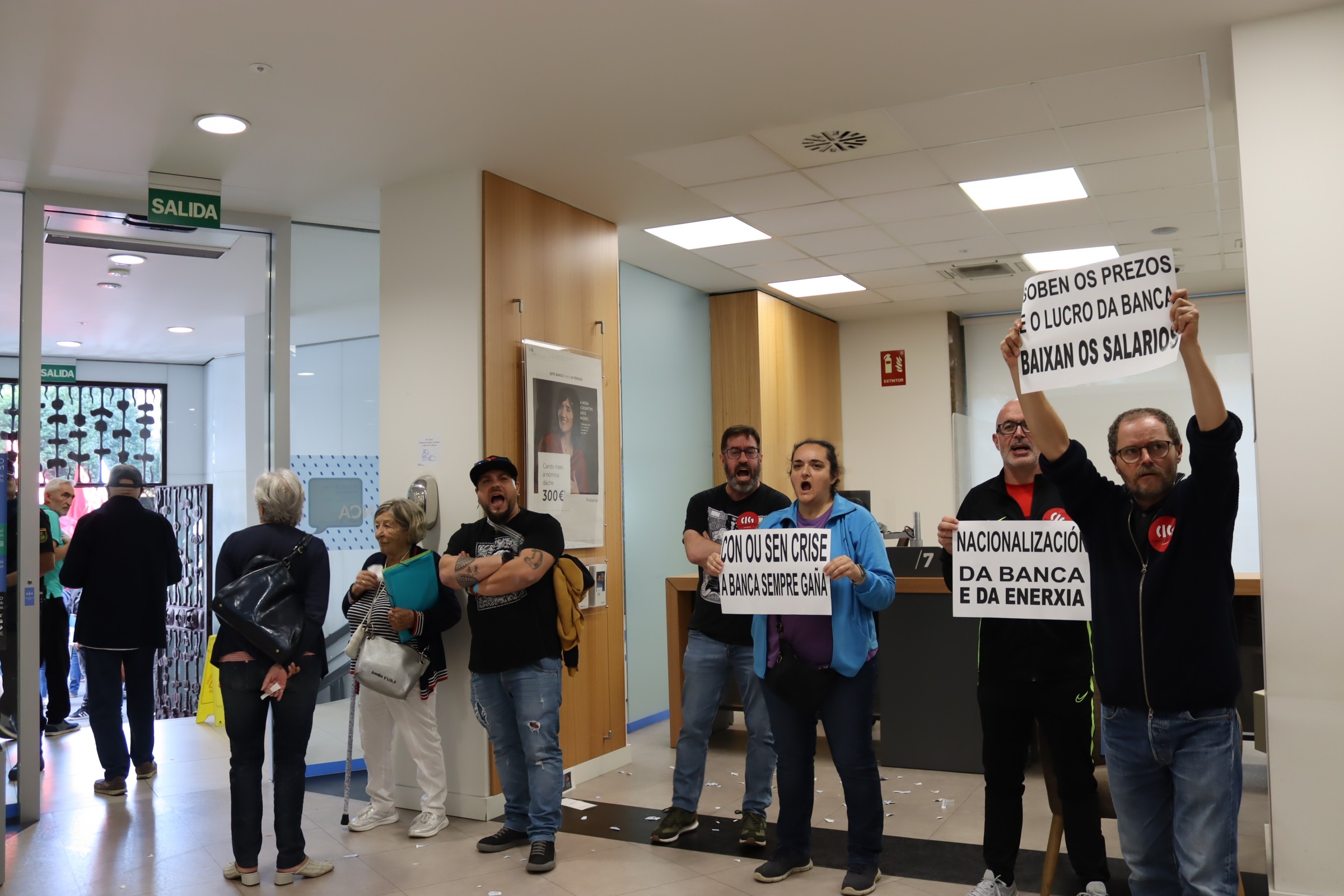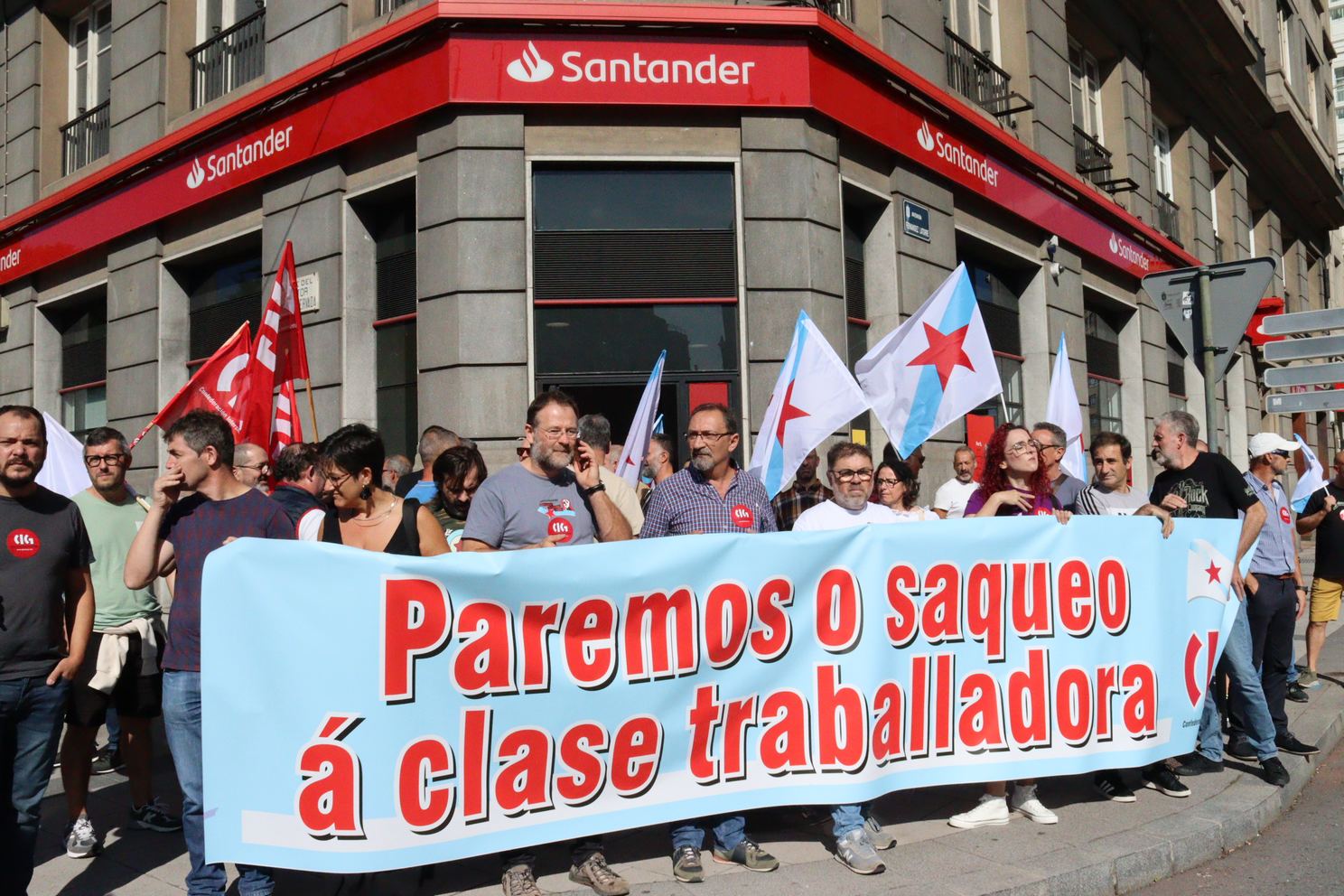 O secretario xeral da CIG, Paulo Carril, explicou que estas accións reivindicativas se fan en entidades financeiras precisamente "porque os bancos -xunto coas distribuidoras de alimentación e as empresas enerxéticas- representan esta festa de ganancias do capital". Lembrou que só no primeiro semestre deste ano, a gran banca española aumentou o seu beneficio un 20,2%, gañando 12.386 millóns de euros.