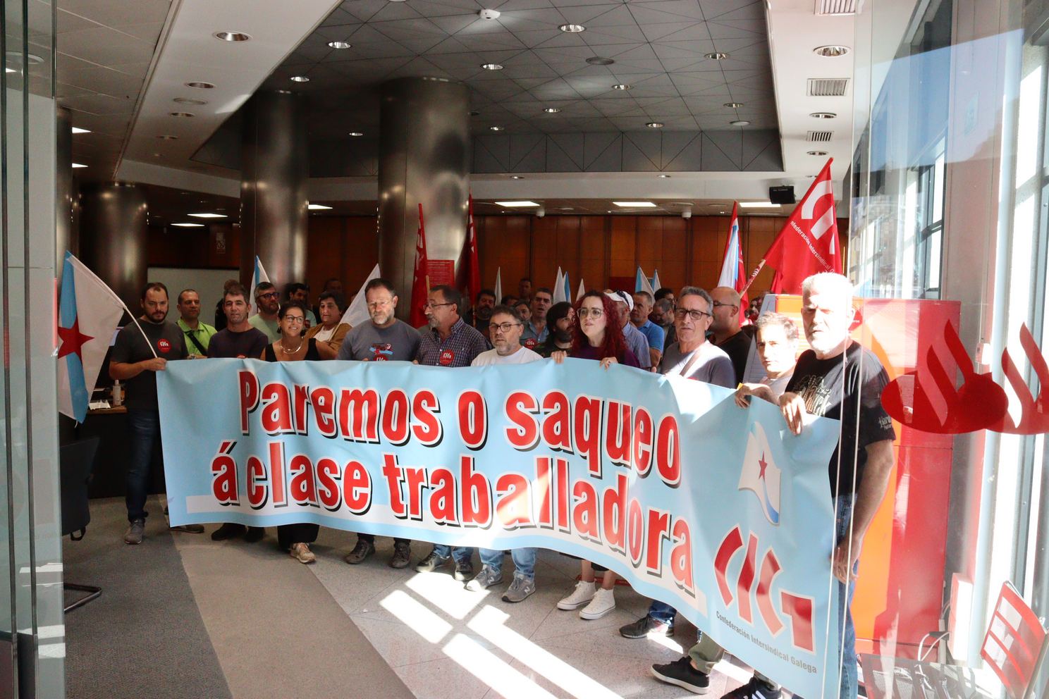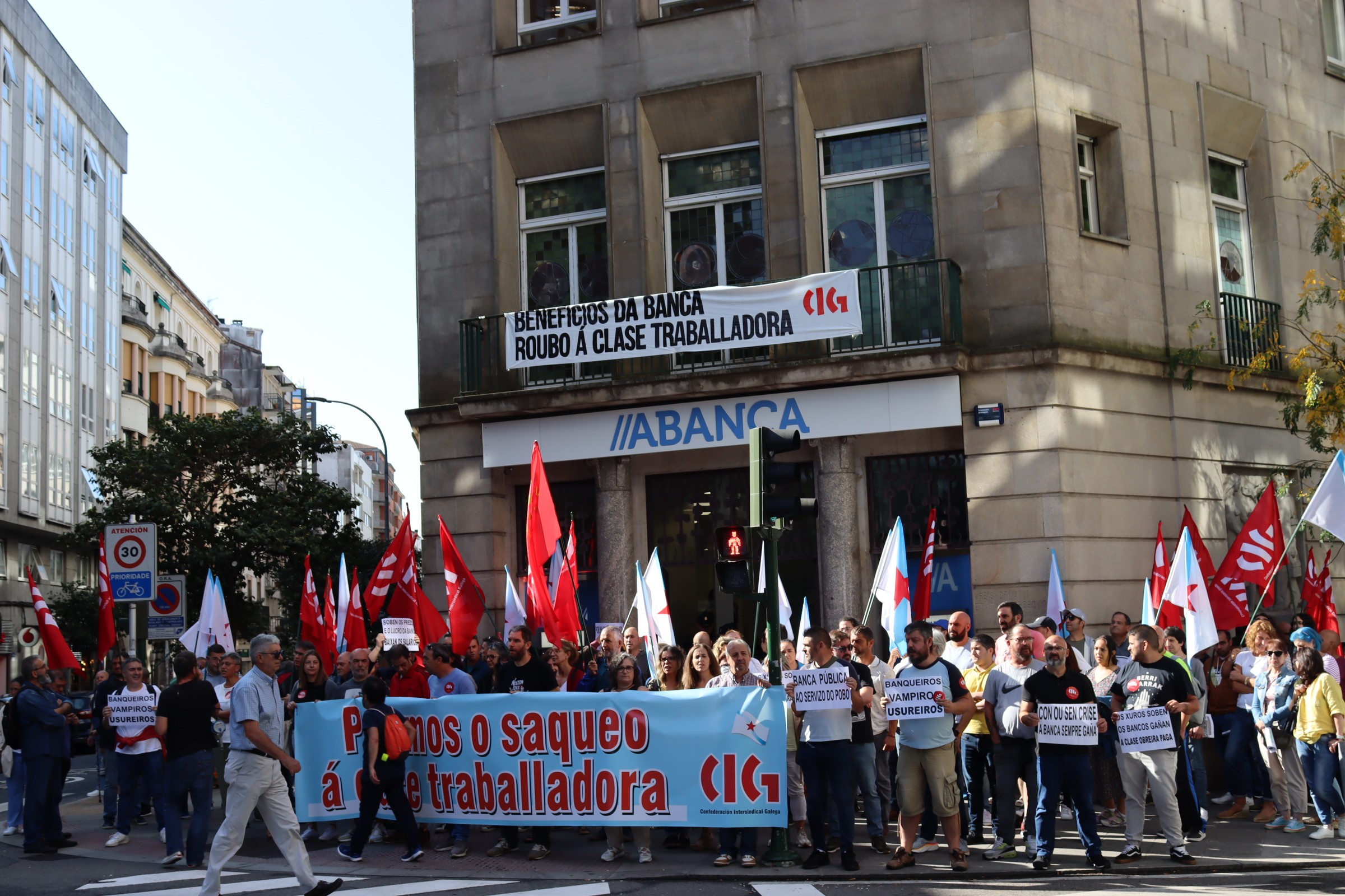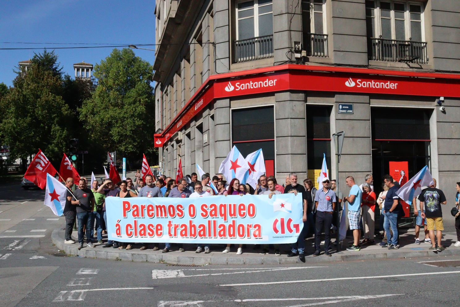 O secretario xeral da CIG, Paulo Carril, explicou que estas accións reivindicativas se fan en entidades financeiras precisamente "porque os bancos -xunto coas distribuidoras de alimentación e as empresas enerxéticas- representan esta festa de ganancias do capital". Lembrou que só no primeiro semestre deste ano, a gran banca española aumentou o seu beneficio un 20,2%, gañando 12.386 millóns de euros.