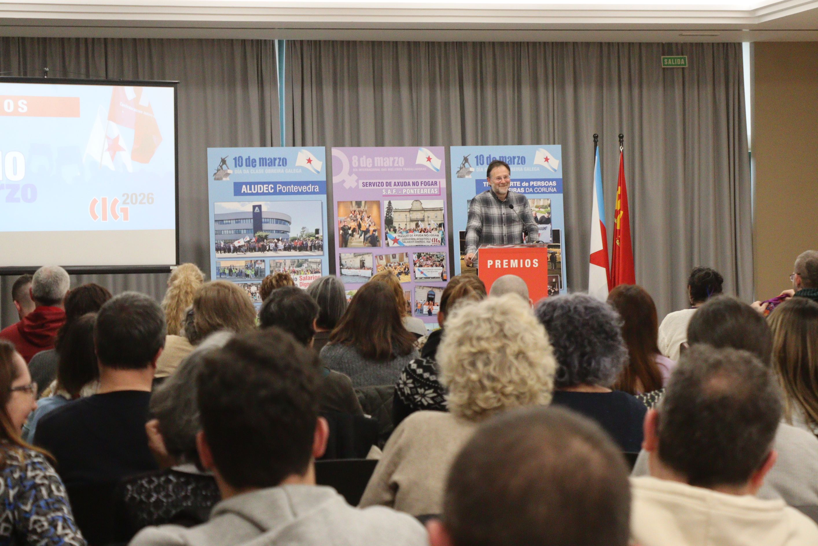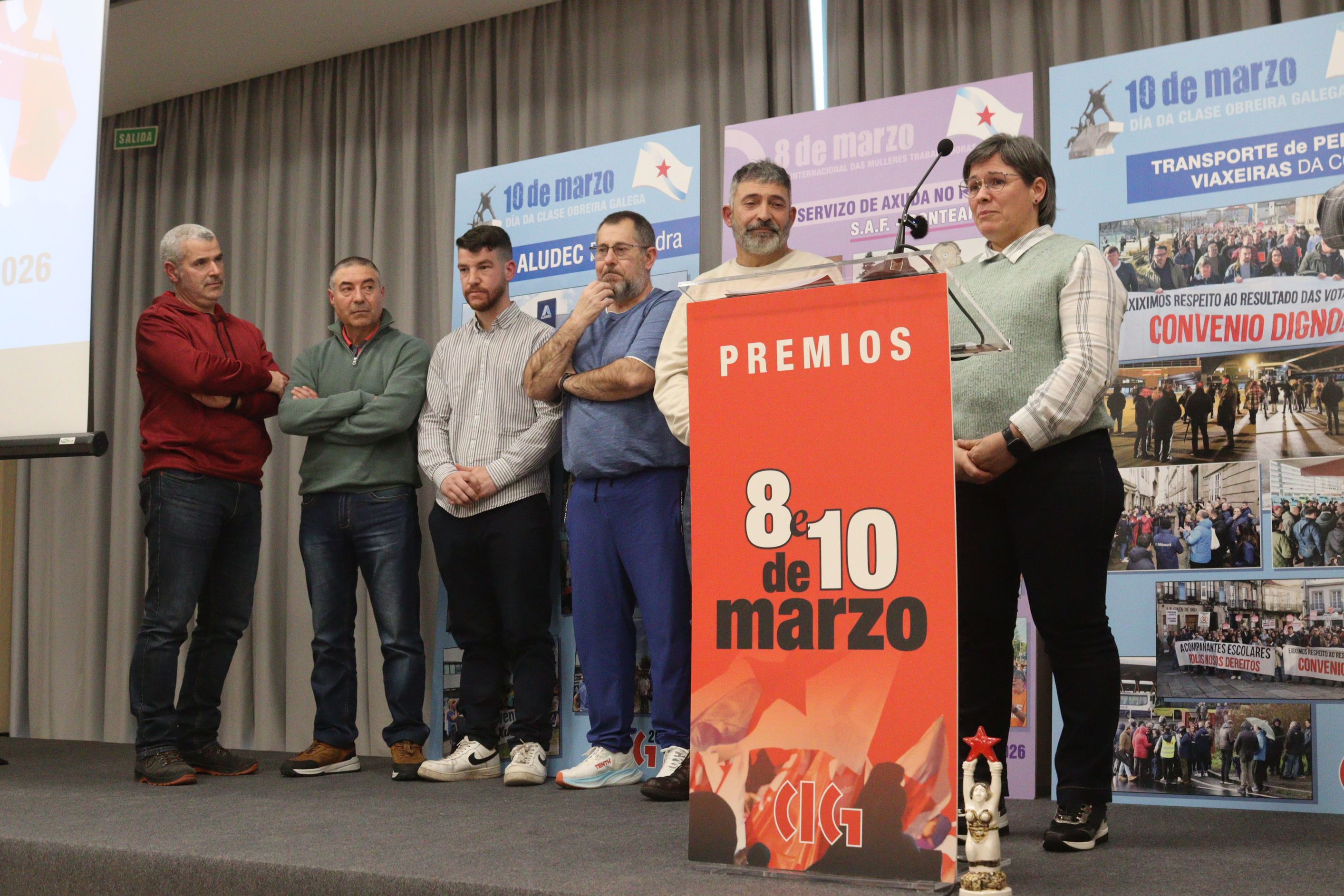 O secretario xeral da CIG, Paulo Carril, encargado de entregar o premio, salientou a capacidade de resposta sindical e de dignidade das traballadoras e traballadores do sector do transporte "fronte á unión política entre o poder político e empresarial que representan o PP e o grupo Monbús". E apuntou que as loitas recoñecidas neste acto "dan fe da adversidade a que cada día se enfronta a clase obreira galega".