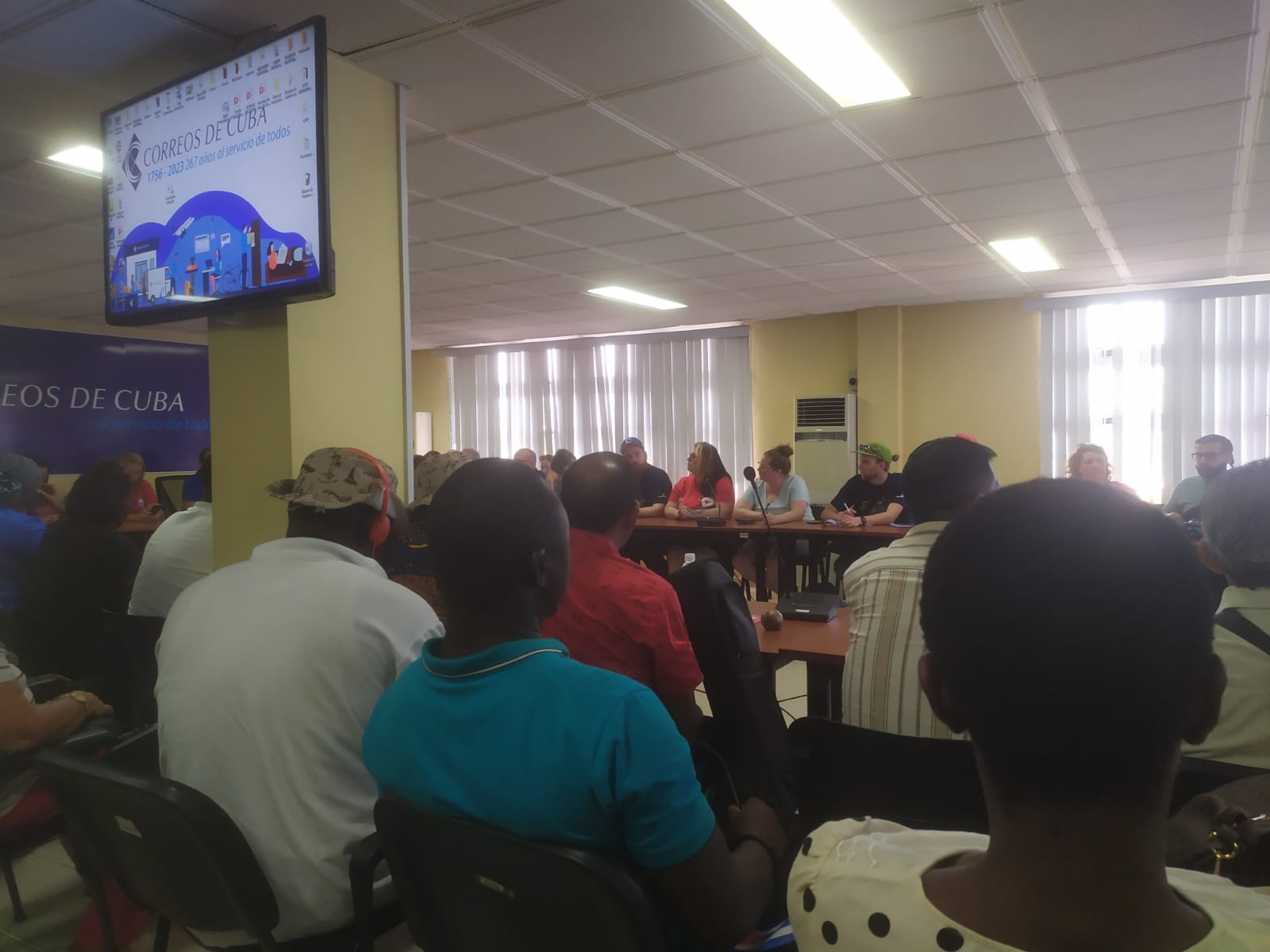 - Visita e encontro cos traballadores e traballadoras de Correos de Cuba, EAG (Empresa de Aseguramiento General). Logo dun percorrido polas instalacións do centro, as explicacións oportunas, e unha pequena festa de convivencia, participamos nunha asemblea, con distintas intervencións e debates.