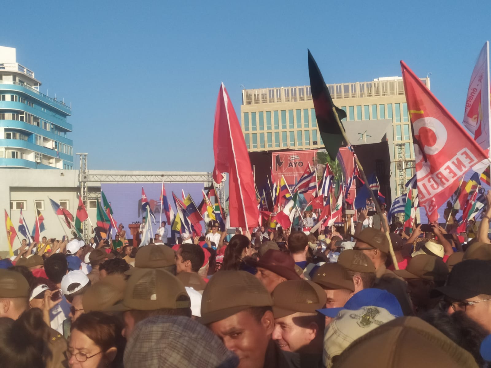A representación da CIG participou no acto que se celebrou no Malecón da Habana, diante da Tribuna Anti-imperialista, con máis de 200 mil traballadores e traballadoras que xa enchían as rúas de arredor desde a madrugada, até ás 7 de mañá, que comezou o acto principal, coa presenza do Presidente da República, Miguel Díaz-Canel Bermúdez, de Raúl Castro Ruz, e outros membros do buró político. O acto comezou co himno de Cuba e, logo de diversas actuacións musicais e a intervención dunha representante dos xuventudes traballadoras, foi clausurado polo Secretario Xeral, Ulises Guilarte de Nacimiento, concluíndo coa interpretación da Internacional.