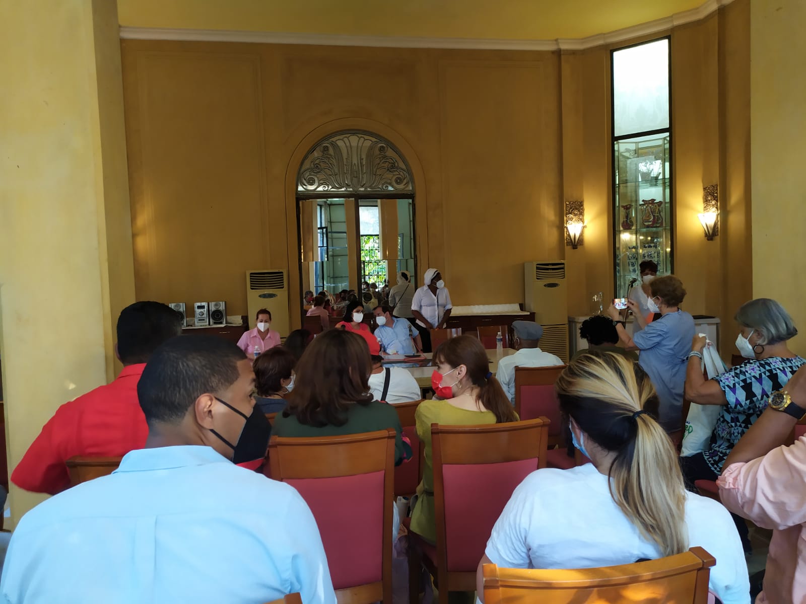 Pola mañá houbo encontro cos traballadores e traballadoras de LABIOFAM, unha empresa de biotecnoloxía que traballa no sector da medicina, cosmética, alimentación, veterinaria e produtos agropecuarios. Foi, precisamente, o Sindicato Agropecuario quen coordinou esta visita que consistiu nun acto de solidariedade con centos de traballadores e traballadoras no exterior das instalacións dunha das súas factorías na Habana, e un acto máis pechado con representantes institucionais (o ministro de Agricultura), xestores, sindicais e do persoal da empresa.