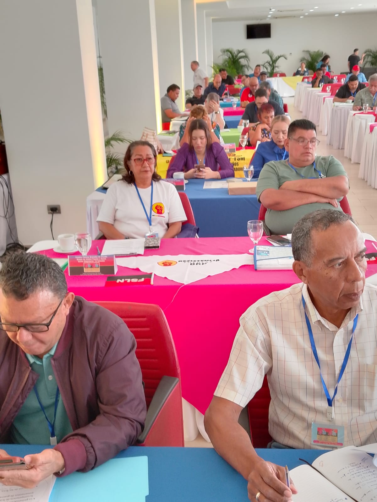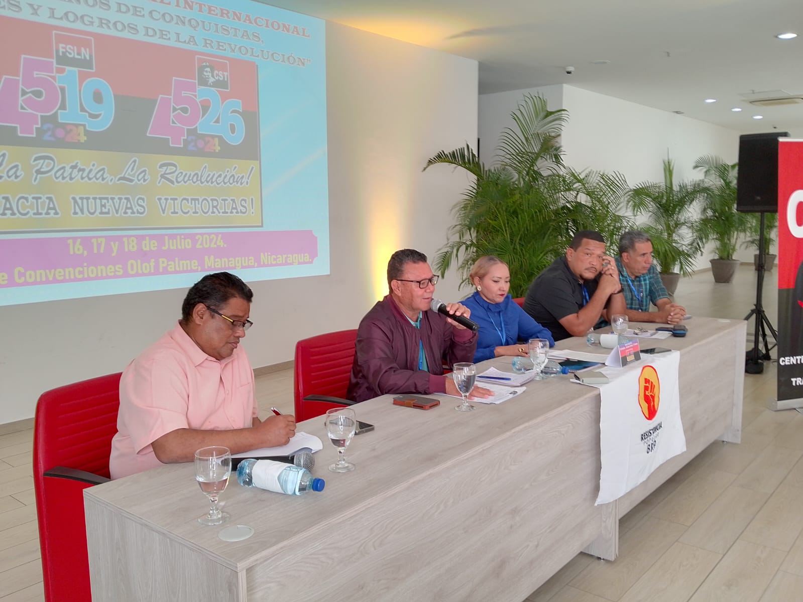 Cómpre destacar a presenza, durante todo o encontro, da ministra de Traballo, Alba Luz Torres Briones, e o viceministro de Traballo, Enrique Espinoza Peña, que expuxeron no comezo os logros da Revolución Popular Sandinista en materia de restitución de dereitos sociais, laborais e económicos. Que acompañaron a outras exposicións sobre a importancia da solidariedade internacional e a loita dos pobos, a resposta contra o imperialismo en Nicaragua, ou unha exposición sobre a vida de Sandino.