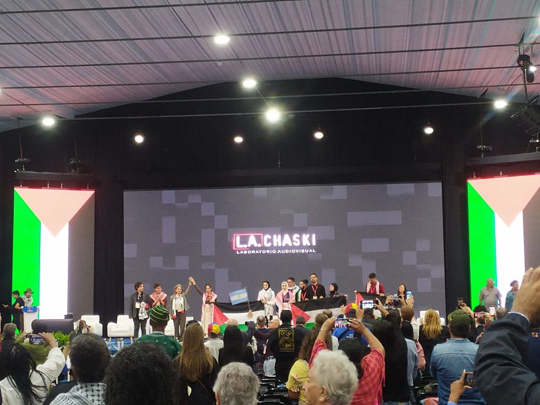 O día 11 continuou o programa do Festival cunha emotiva homenaxe e chamada de solidariedade co pobo palestino, no que a delegación de Cuba tivo un especial protagonismo, polo seu compromiso histórico coa resistencia deste pobo e a relación de irmandade que quedou reflectida na imaxe final deste acto.