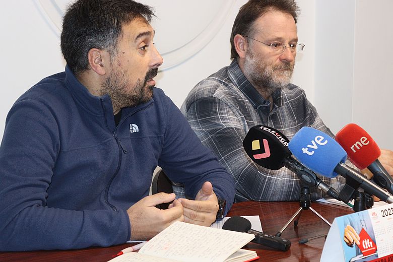 O secretario xeral da CIG, Paulo Carril, foi o encargado de debullar as 10 medidas durante a rolda de prensa celebrada hoxe en Vigo, na que tamén participou o secretario confederal de Negociación Colectiva, Emprego e Industria, Paco Sío.