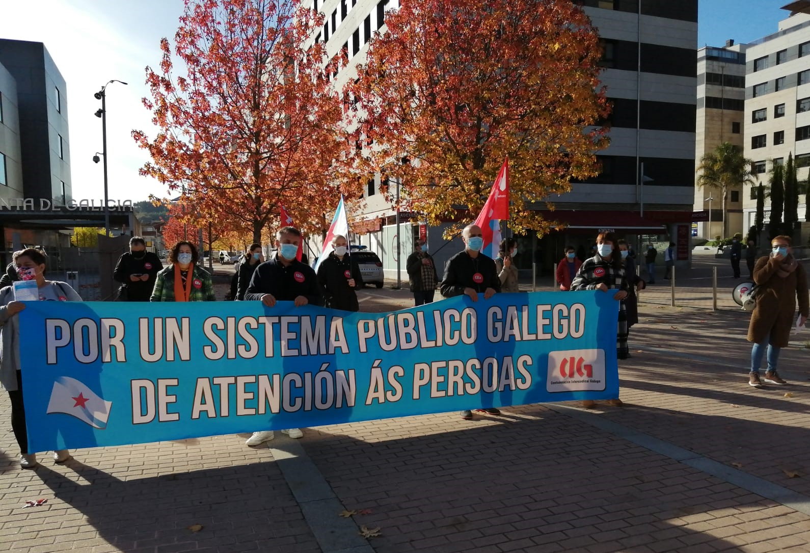 A CIG lanzou esta mañá -con concentracións nas sete cidades galegas- a campaña na que se enmarca a Iniciativa Popular en demanda dun Sistema Público Galego de Atención ás Persoas que promoverá nas próximas semanas. Así o anunciou, na concentración celebrada en Compostela, o secretario xeral, Paulo Carril, quen considerou que “a crise sanitaria derivada da pandemia da COVID-19 puxo máis de manifesto que nunca a necesidade de pór os coidados na prioridade das políticas públicas” e, polo tanto, “a urxencia de investimento público en servizos de atención ás persoas”.