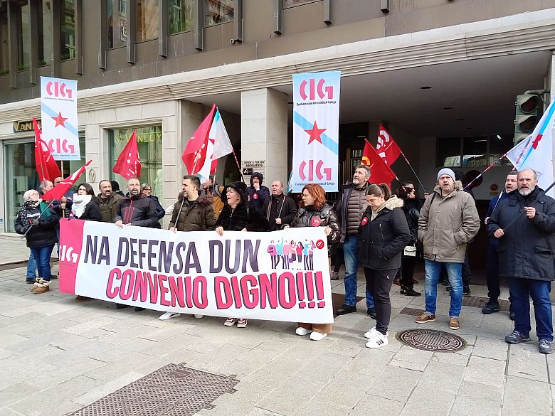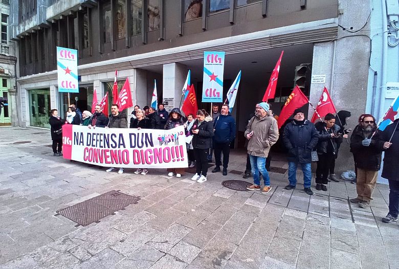 A CIG realizou unha protesta este mércores diante da sede da Confederación de Empresarios de Lugo (CEL) para protestar polo bloqueo da negociación colectiva na provincia. Na actualidade, existen unha serie de convenios colectivos provinciais que levan anos vencidos (algúns deles incluso máis dunha década) e sen expectativas de negociación a curto prazo, que afectan a máis de 10.000 traballadores e traballadoras.