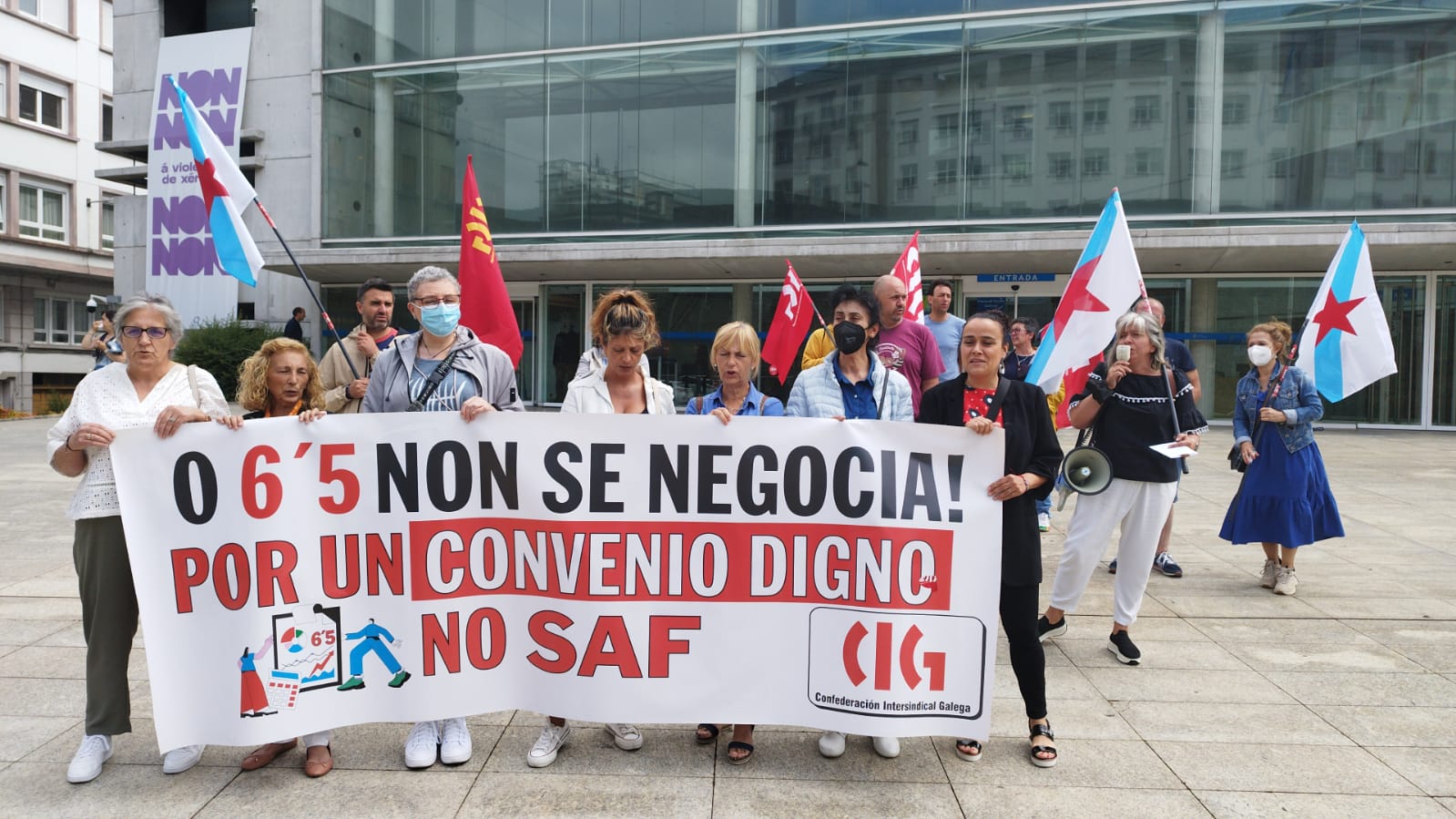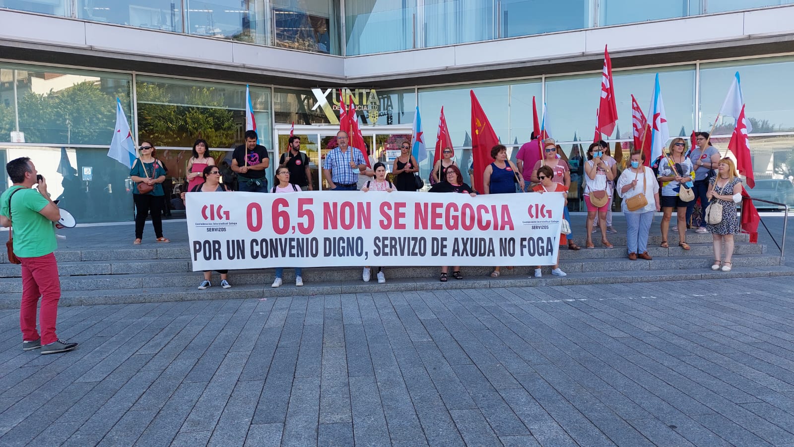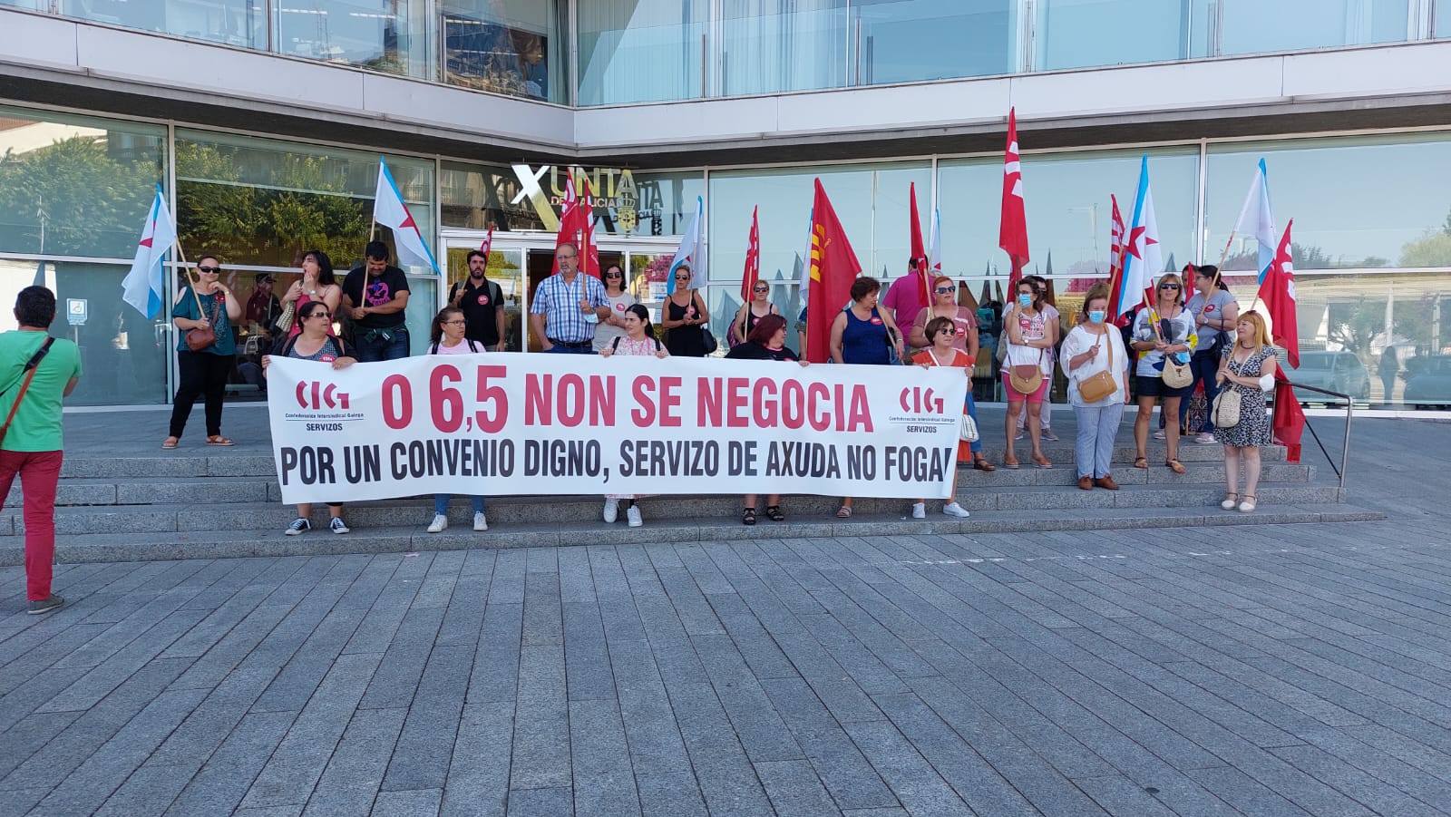 A CIG realizou concentracións este martes diante das delegacións territoriais de Política Social para exixir da Xunta de Galiza, como administración responsábel do servizo, que atenda as demandas das traballadora dos Servizo de Axuda no Fogar e inste as empresas concesionarias a que apliquen de inmediato a suba do 6,5%, correspondente ao IPC de 2021, e negocien un convenio que supoña unha mellora real das condicións destas profesionais.