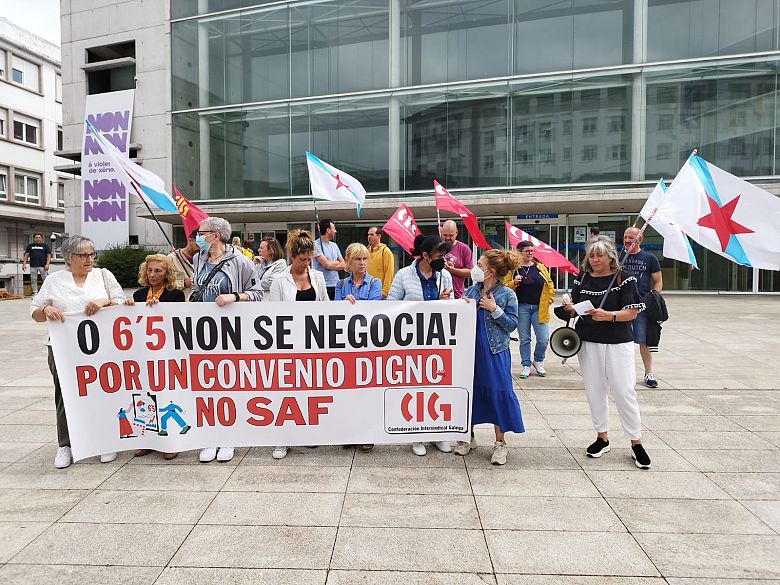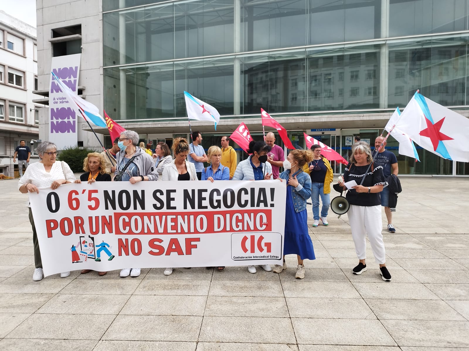 Por iso, a CIG-Servizos ten iniciado unha campaña dirixida ás tres patas do sector: ás empresas para que procedan á actualización inmediata dos salarios segundo o establecido no convenio colectivo, e que negocien un convenio que dignifique as condicións laborais e salarias; aos concellos para que obriguen as concesionarias a cumprir cos pregos e co convenio; e á Xunta de Galiza para que mellore as condicións dos contratos do SAF, incrementando o prezo do servizo e que este incremento reverta en melloras para as familias e as traballadoras.