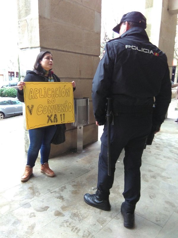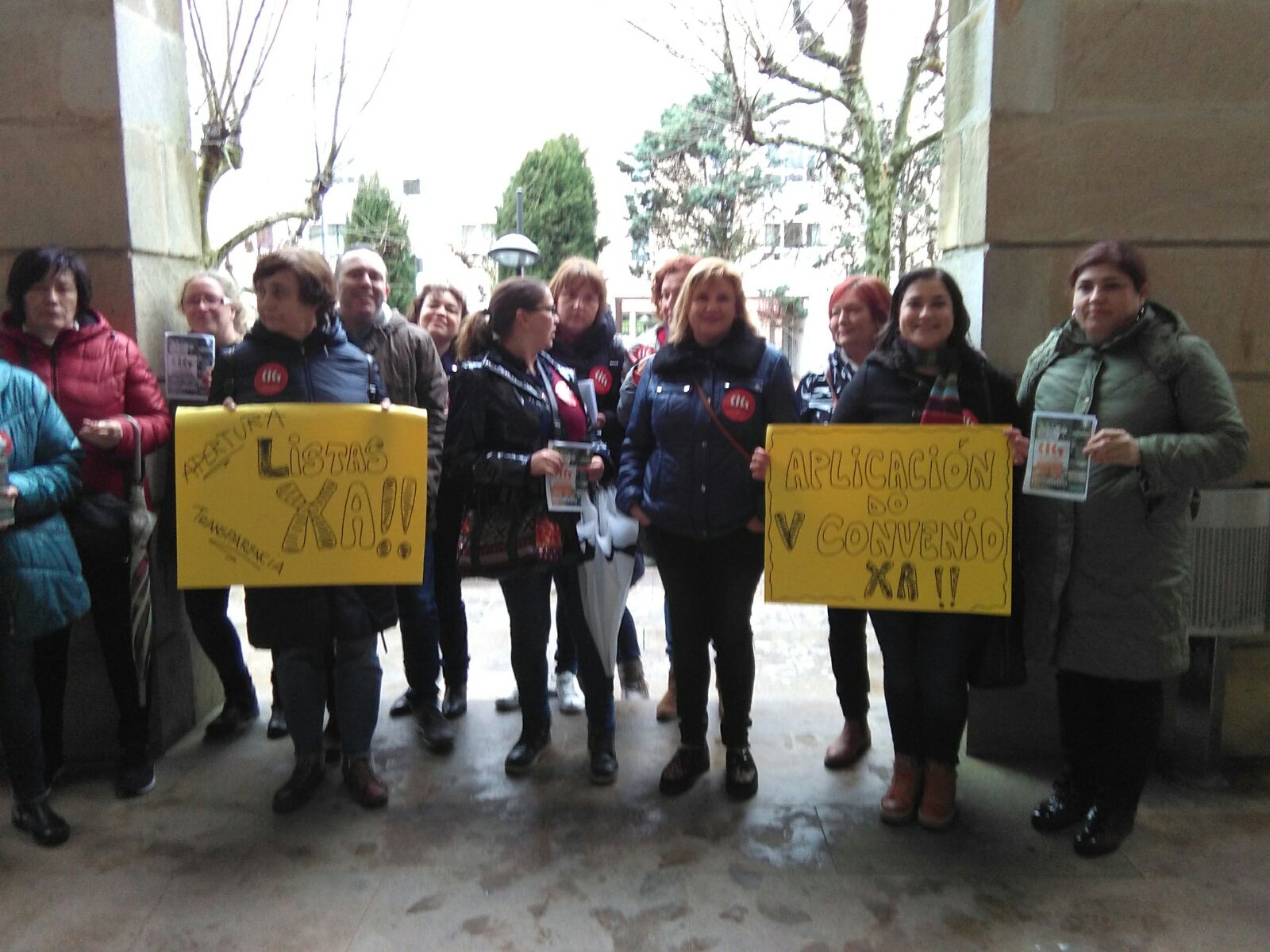 O pasado venres, coincidindo coa a Asemblea Xeral do Consorcio de Servizos de Igualdade e Benestar na EGAP, a CIG realizou unha concentración para esixir a aplicación íntegra do V Convenio e a negociación da Relación de Postos de Traballo. Aproveitando a presenza das alcaldesas e alcaldes, as delegadas e delegados da CIG entregáronlles un folleto explicando a situación do persoal do Consorcio e pedíndolle a súa intervención.