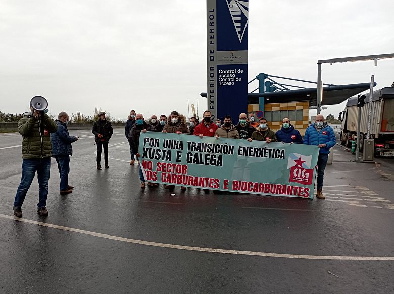 A CIG concluíu este xoves o calendario de mobilizacións para esixir unha transición galega xusta no sector dos carburantes e biocarburantes e que se poña en marcha unha mesa de traballo para tratar, no marco do proceso de descarbonización da economía, as alternativas de industrialización e de creación de postos de traballo nos territorios afectados. Tras as concentracións diante da refinería de Repsol na Coruña e da planta de Vertex en Curtis, hoxe a protesta trasladouse até ás instalacións de Masol Iberia Biodiesel no Porto Exterior de Ferrol.