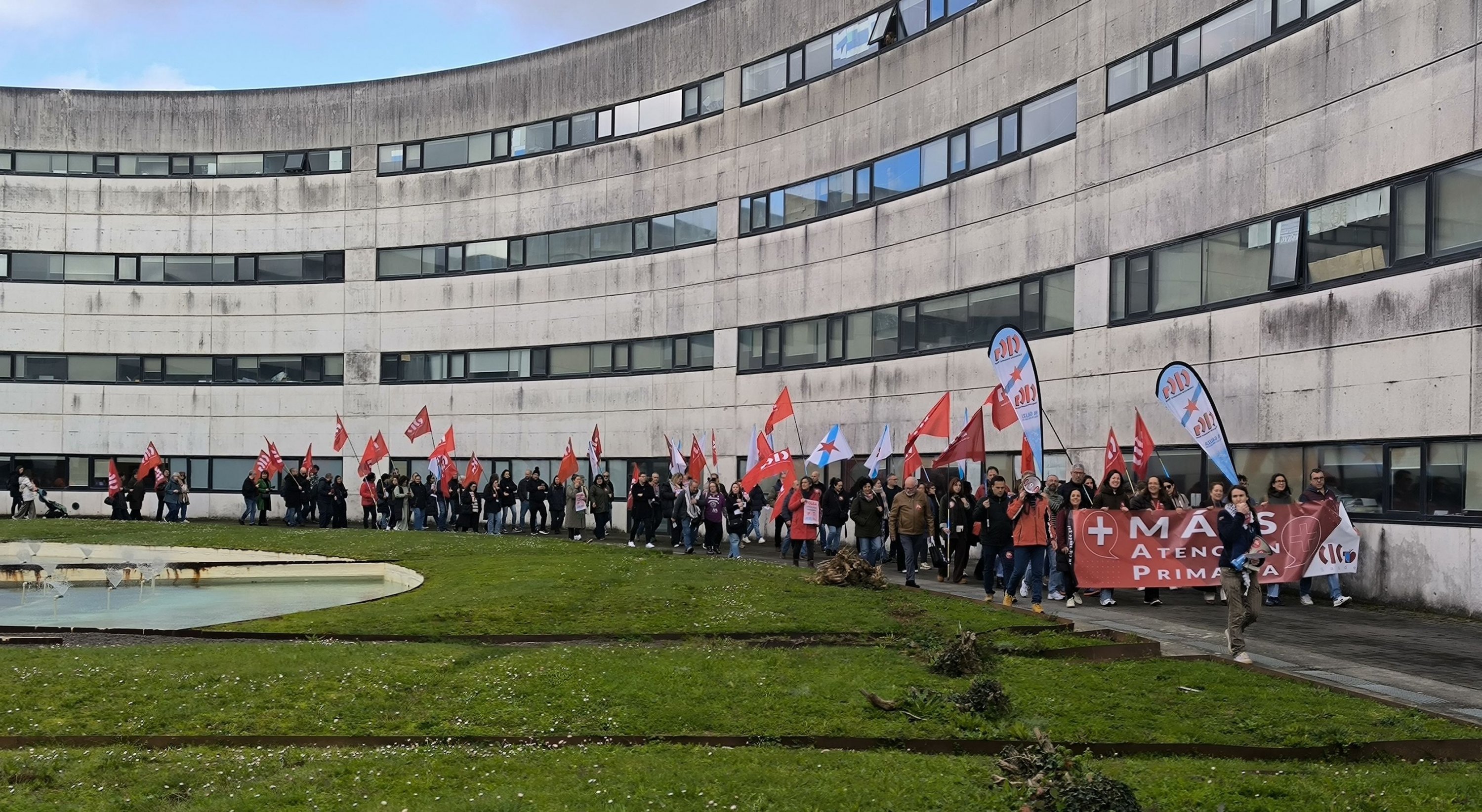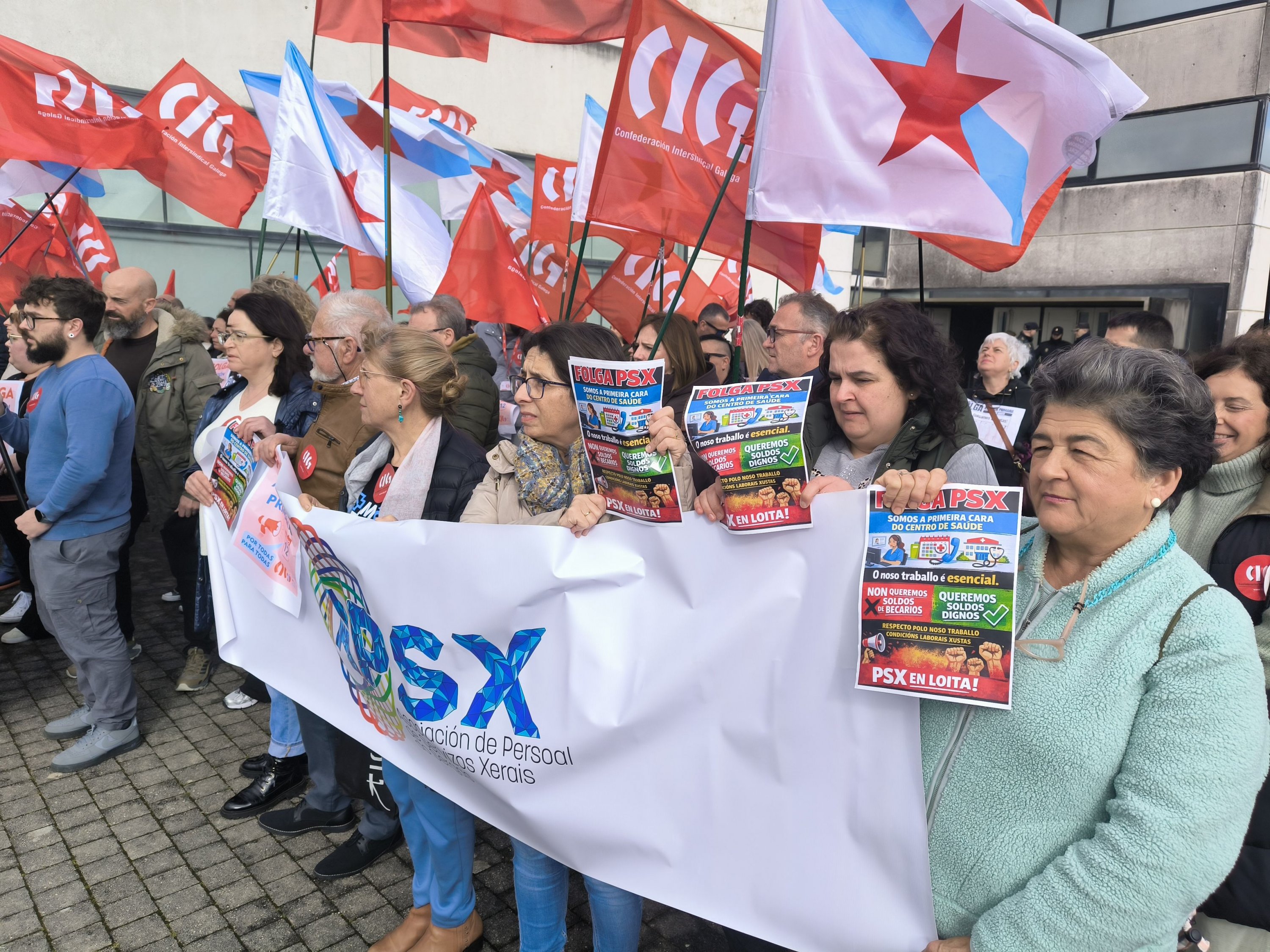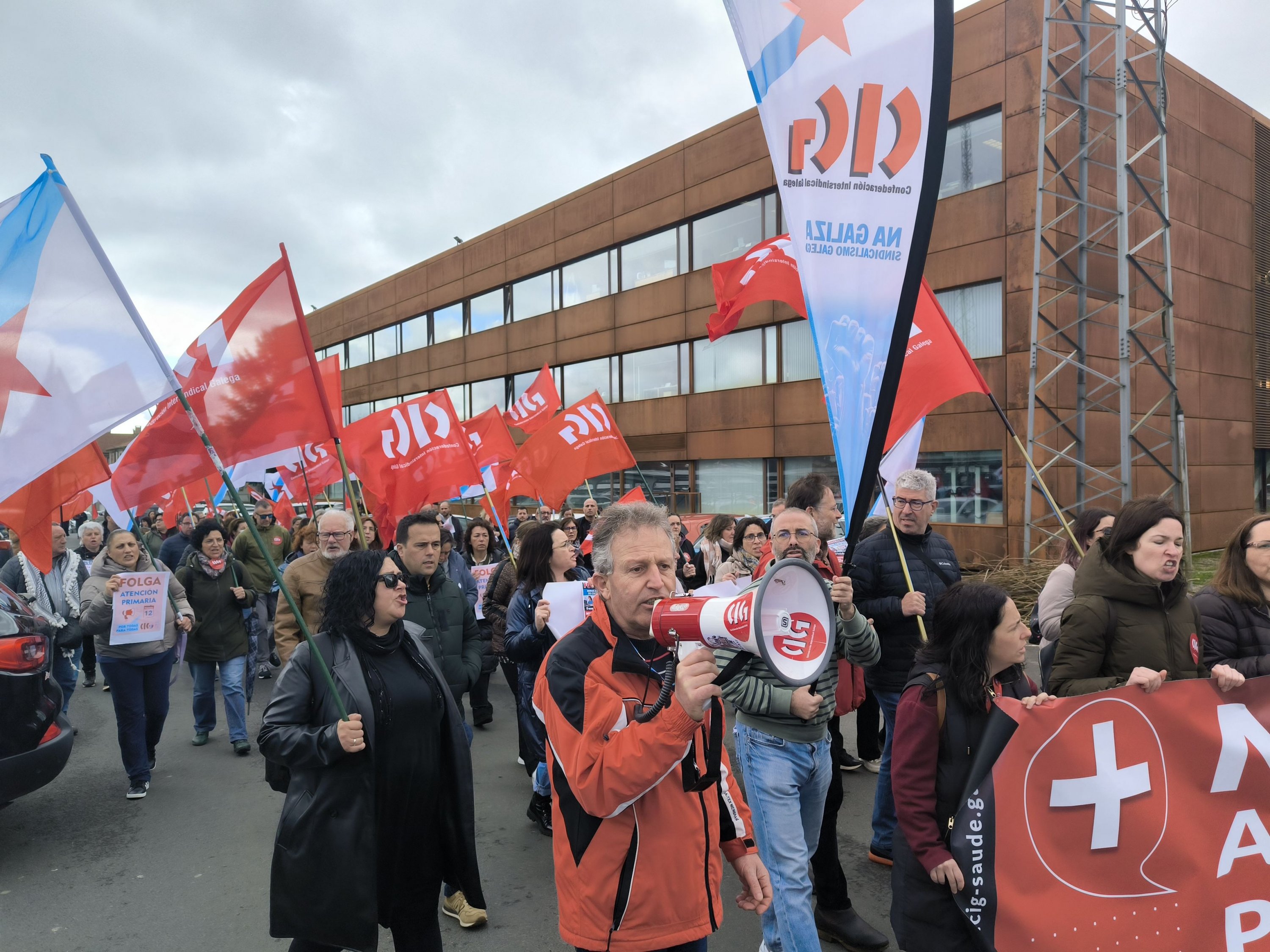 A CIG-Saúde mobilizouse este xoves na Consellaría de Sanidade para exixir medidas urxentes e reais fronte a situación límite da Atención Primaria que afecta tanto ás condicións laborais como a calidade asistencial que se presta. Na protesta, que se realizou no marco da xornada de folga convocada pola CIG para todas as categorías dos centros de saúde e PAC, denunciouse a falta de persoal que se arrastra dende hai anos, a sobrecarga laboral, as axendas imposíbeis e o incremento da burocracia que deixa menos tempo para atender as persoas “como merecen”.