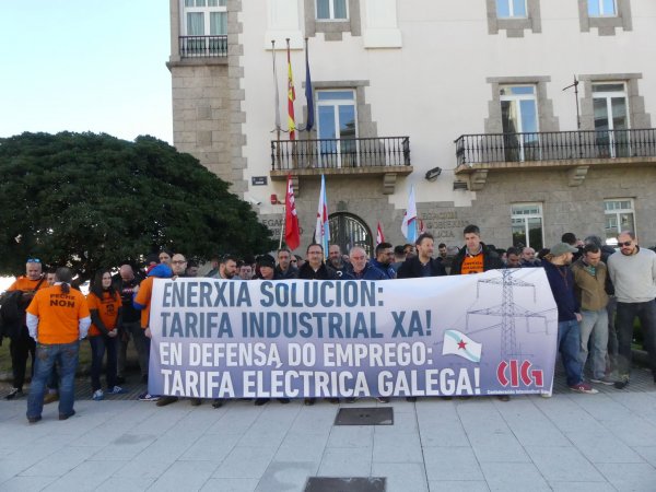 Delegados e delegadas da CIG concentráronse este xoves diante da Delegación do Goberno na Coruña para esixir solucións para a industria electrointensiva e apresurar a creación dunha tarifa industrial estábel, predicíbel e competitiva que recoñeza o estatuto específico deste tipo de empresas con grandes consumos de enerxía. A urxencia desta demanda, subliñou o secretario xeral da CIG, Paulo Carril, segue a estar condicionada pola contra atrás para evitar a execución dos despedimentos na fábrica de Alcoa, que remata o 1 de xullo, e polo ERTE que Ferroatlántica acaba de formular.
