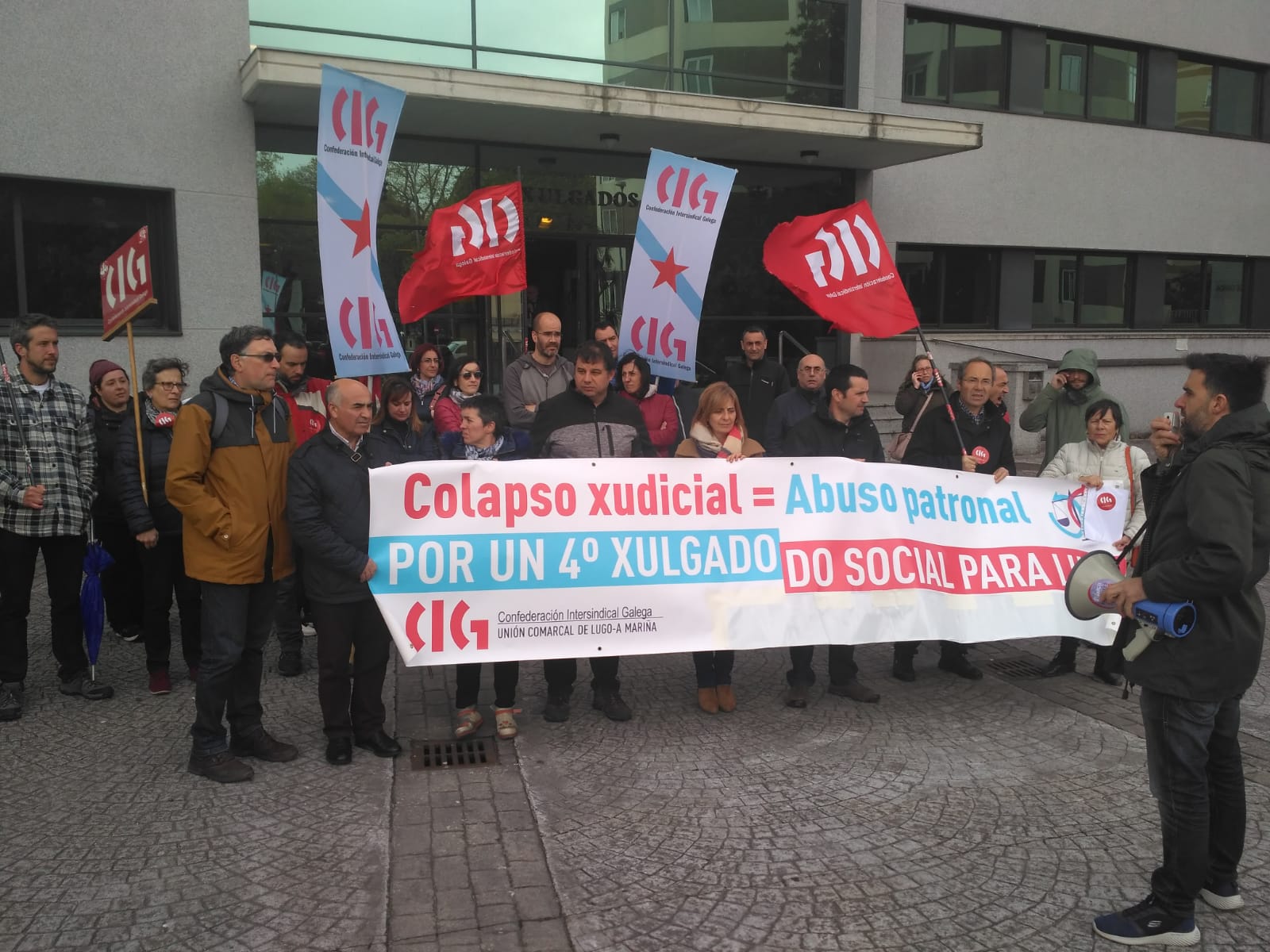 A CIG retomou este martes as mobilizacións para esixir a creación inmediata do 4º Xulgado do Social para Lugo, ante a situación xerada pola negativa do Goberno español a autorizar unha nova sala para a cidade, a pesar de ser esta unha proposta elevada pola comisión mixta formada pola Xunta de Galiza e o TSXG.