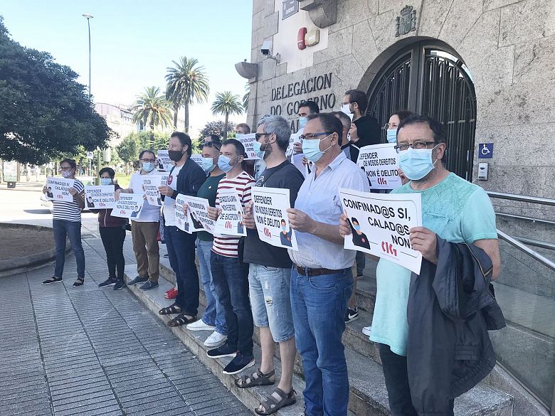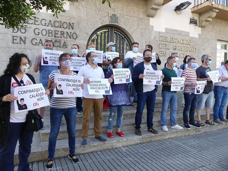 "Hoxe vimos aquí denunciar como se utilizou o estado de alarma para cercernar dereitos fundamentais, converténdoo nun auténtico estado de excepción, nunha nova lei mordaza. Parece que nos queren calar para que non denunciemos os absusos patronais e o confinamento dos nosos dereitos ", aseverou Carril, quen lembrou que a actividade sindical estaba "perfectamente excepcionada do estado de alarma".