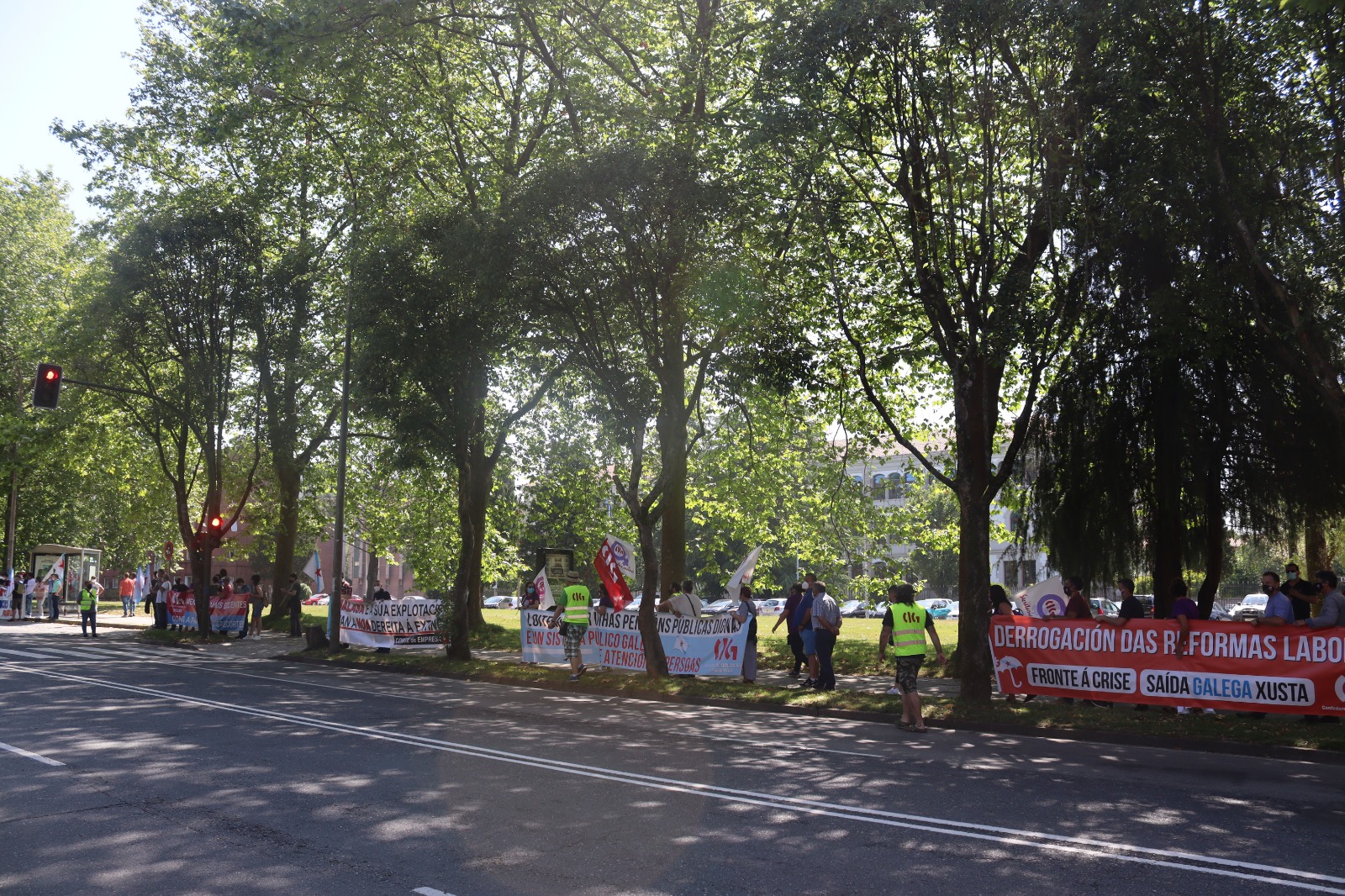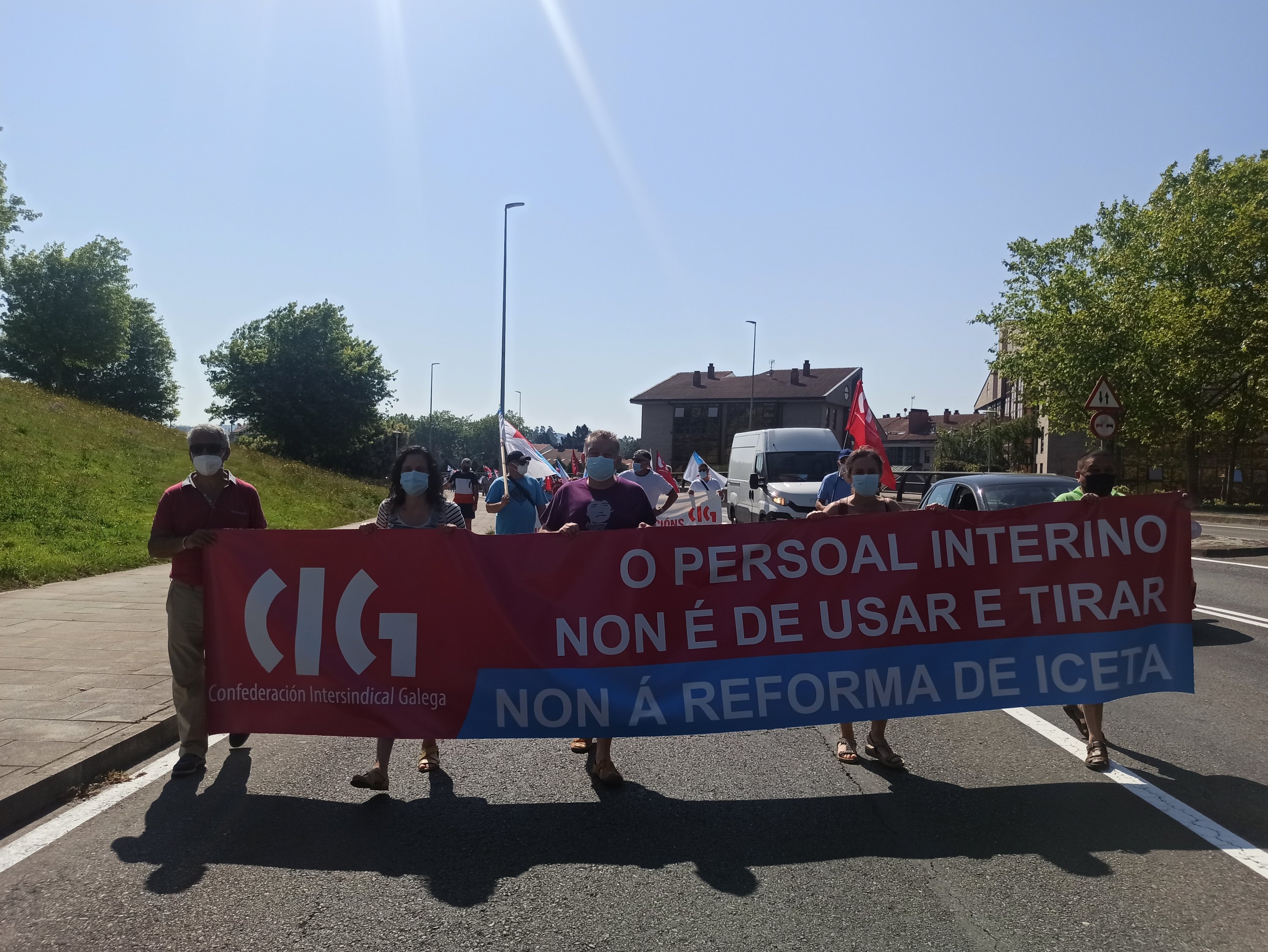 O secretario xeral da CIG advertiu a Feixó e “aos intereses que representa, que non lles temos medo e por moito que nos queiran negar e someter a un apartheid, somos a primeira central sindical en Galiza e hoxe vimos deixarlle a mensaxe de que é firme a nosa vontade e decisión na loita e na mobilización para atopar solución ás reivindicacións que traemos en cada unha destas faixas, en cada unha das consignas que estamos berrando”.