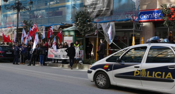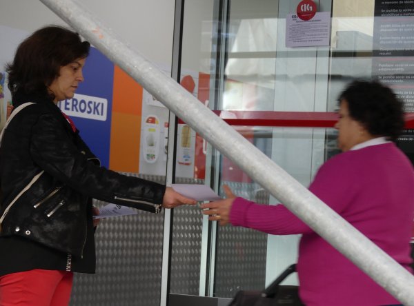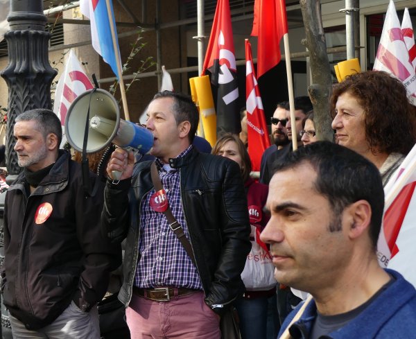 A federación de Servizos da CIG de Vigo desenvolveu hoxe unha concentración diante do supermercado Eroski da rúa García Barbón para rexeitar o despedimento de tres traballadores/as. Dende a central denuncian que a compañía vasca de distribución bota man da reforma laboral do PP para desfacerse dos empregados/as fixos/as para contratar persoal temporal en peores condicións.