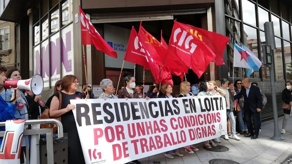 A federación de Servizos da CIG continuou onte coa súa campaña para reclamar o pago do IPC de 2021 ao persoal dos Servizos de Axuda do Fogar (SAF) e en demanda dun convenio colectivo que dignifique as condicións laborais do sector. A central sindical desenvolveu unha concentración diante da delegación da Xunta en Ourense, na que aproveitou para denunciar a precariedade que padecen as traballadoras/es dos SAF.