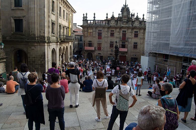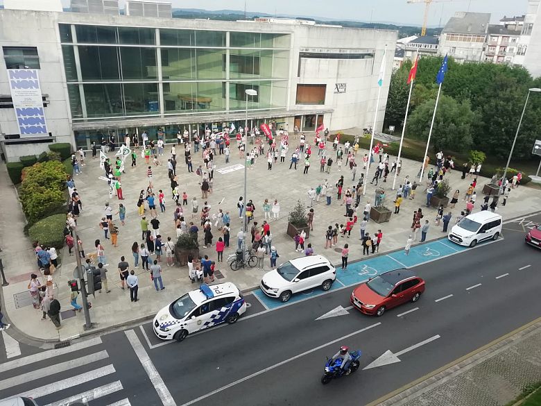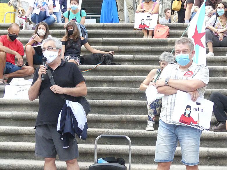 “Con esta concentración na que están representados todos os membros da comunidade educativa, estamos a reclamar uniformidade nos criterios para que non exista discriminación entre centros nin entre etapas educativas á hora de garantir o ensino presencial, o único no que se mantén a calidade do ensino e da atención educativa, e cando menos o metro e medio de distanciamento físico que se amosou como a medida máis eficaz, xunto co uso de máscaras ou a ventilación dos espazos, para reducir o risco de contaxios”, dixo Bermello.