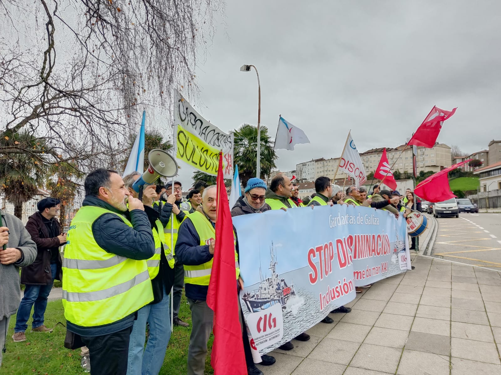 Gardacostas de Galiza continúan coas mobilizacións para reclamar a súa inclusión no réxime especial do Mar, do que están excluídos pola súa condición de persoal funcionario. Este xoves levaron as súas reivindicacións até ás portas da Xunta de Galiza onde mantiveron un encontro coa conselleira do Mar, Rosa Gallego, á quen lle reclamaron que faga as xestión oportunas para corrixir esta discriminación.