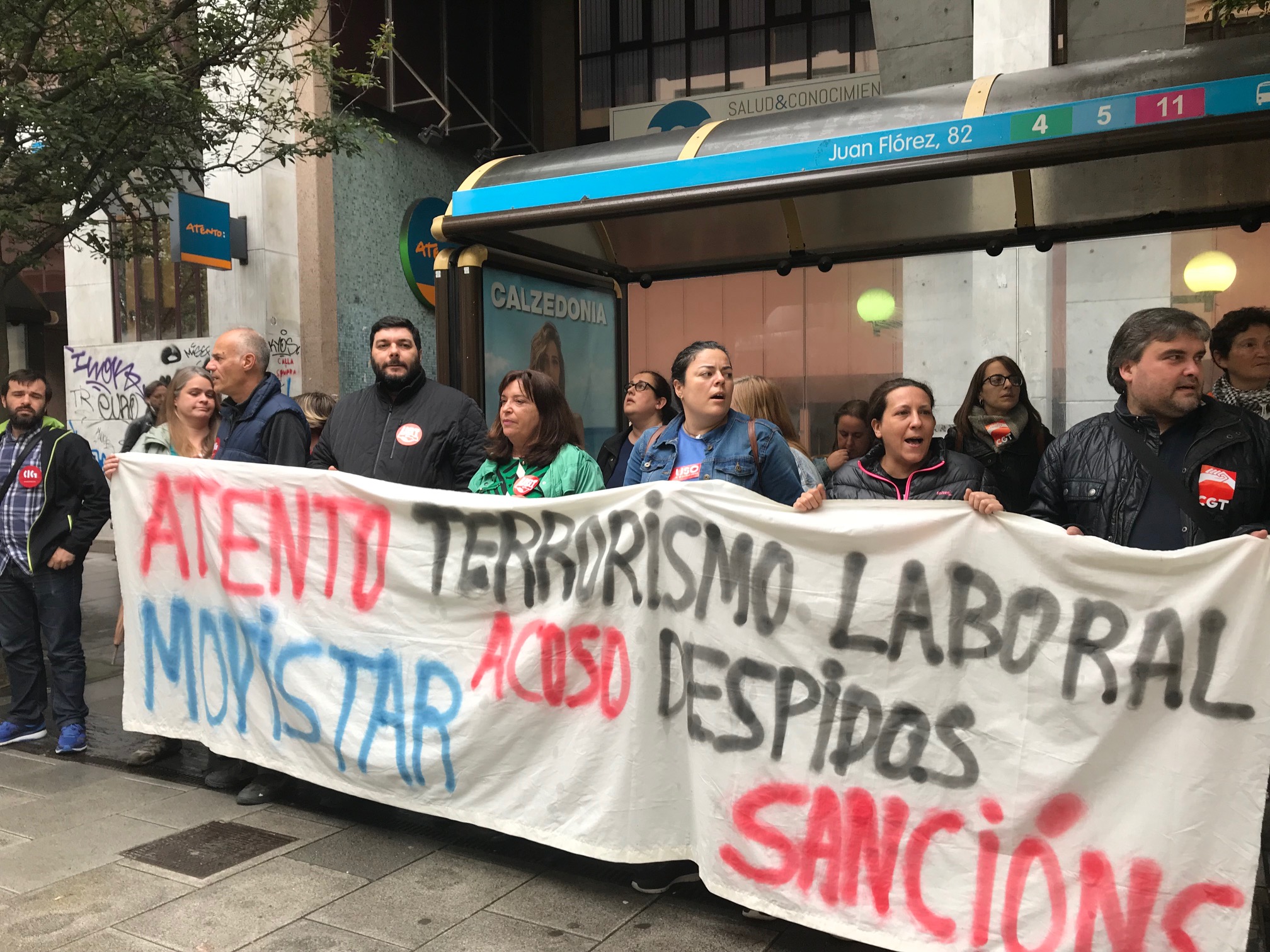Por terceira semana consecutiva, traballadoras e traballadores de Atento están secundando paros de unha hora por quenda laboral e concentración diante das oficinas da empresa na Coruña para esixir o cese da política de acoso, persecucións, ameazas, sancións e despedimentos.