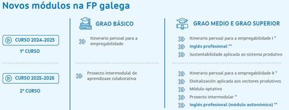 Esta era, segundo fixo pública a Dirección Xeral de FP, a estratexia que a Consellaría de Educación pretendía levar a cabo a respecto da distribución entre cursos académicos dos novos módulos incluídos a raíz da aprobación da Lei Orgánica da Formación Profesional, do Real Decreto 659/2023 polo que se desenvolve a ordenación do Sistema de Formación Profesional e dos sucesivos Reais decretos que modifican os títulos de FP de grao básico, medio, superior e cursos de especialización e se fixan as súas ensinanzas mínimas.