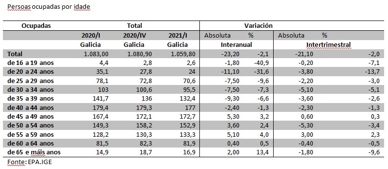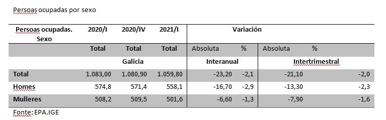 De feito, respecto da poboación ocupada, estímase un descenso de máis de 21.000 persoas. Unha caída do 2% respecto ao trimestre anterior. Desta forte caída da ocupación, a maior parte das persoas que perderon o emprego pasaron a ser desempregadas, concretamente 15.700, o que fixo medrar o paro un 11%.