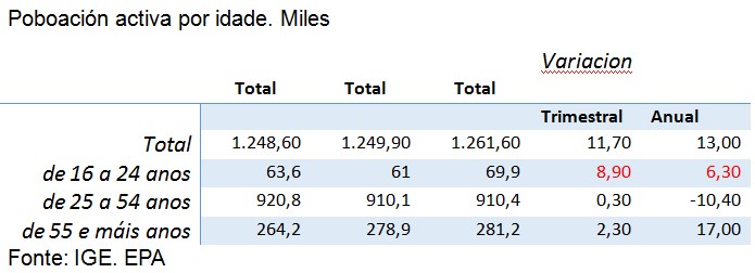 Así as cousas, a taxa de paro en Galiza é do 9,3%, cun total de 117.200 persoas desempregadas. Se ben é certo que a poboación activa aumentou, os datos polo miúdo constatan que ese incremento se produciu maioritariamente entre a mocidade, que aproveita este período do ano, non lectivo, para incorporarse ao traballo remunerado.