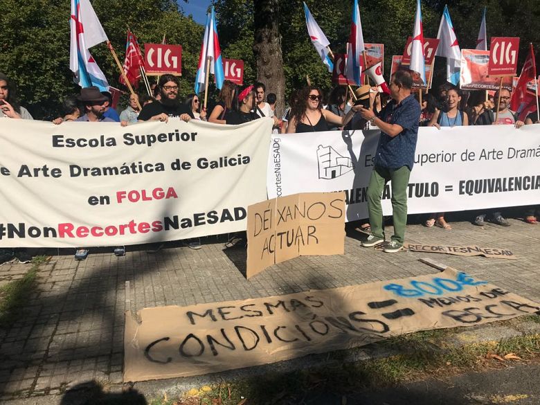 Alumnado e profesorado da Escola Superior de Arte Dramático (ESAD) concentráronse este mércores diante da Consellaría de Educación esixindo unha solución á súa situación. Demandan, entre outras cuestións, a restitución dos seis postos de traballos perdidos nos últimos dous anos e xa desenvolveron, para iso, varias xornadas de folga.