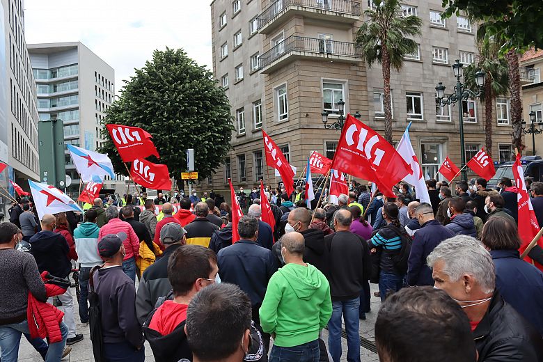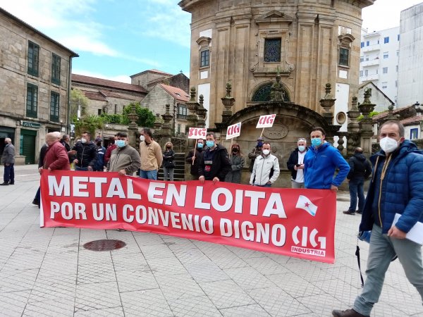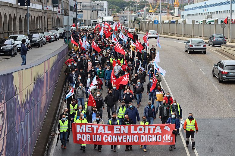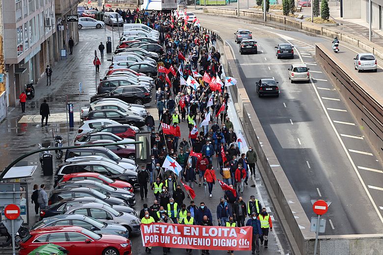 A folga de media xornada convocada hoxe pola CIG no metal pontevedrés para rexeitar o convenio provincial asinado por CCOO e UGT e as patronais Asime, Atra e Instalectra paralizou totalmente a actividade no naval e tivo unha incidencia do 60% no resto do sector. Moitos/as destes/as traballadores/as participaron na manifestación que percorreu Beiramar dende Bouzas até o edificio da Xunta, onde se deron cita máis de medio milleiro de persoas.