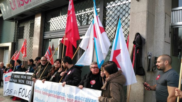 A folga de 24 horas convocada a nivel estatal por todas as organizacións sindicais con representación en Unísono, empresa dos sector dos centros de chamadas, superou o 80% de seguimento en Galiza, onde as empregadas/os se mobilizaron diante dos tres centros de traballo de Vigo. Con esta medida queren rexeitar a contratación fraudulenta “e case en exclusiva” a través de ETT e as numerosas ilegalidades laborais que está a cometer a dirección.