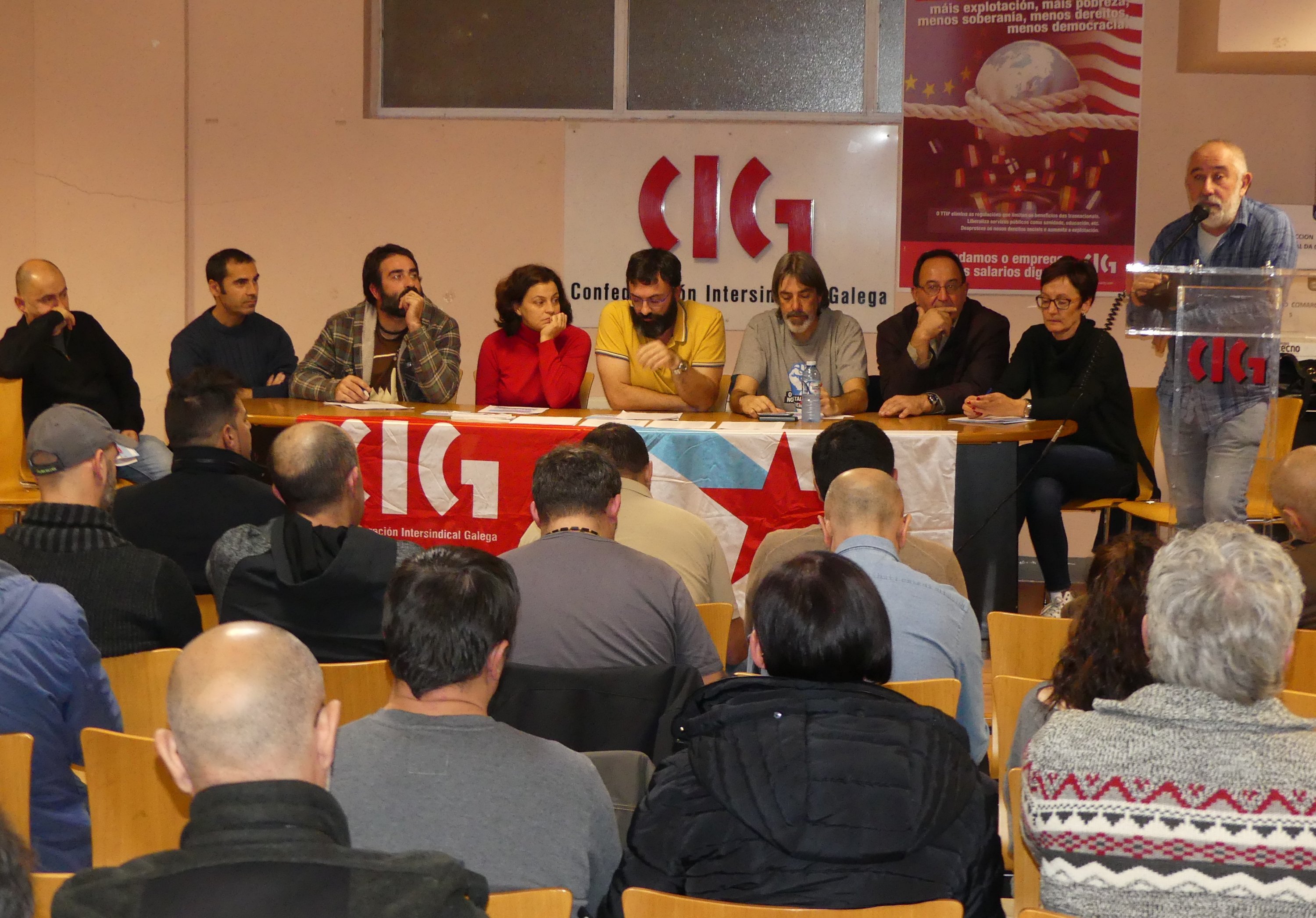 Finalmente, advertiu sobre a oportunidade que se lle presenta neste contexto ao Estado español para incrementar a represión sobre os pobos e as organizacións que cuestionen tanto o sistema capitalista como a configuración territorial e lembrou que a CIG aspira a construír unha Galiza ceibe e socialista. O encontro pechouse coa interpretación do Himno galego.