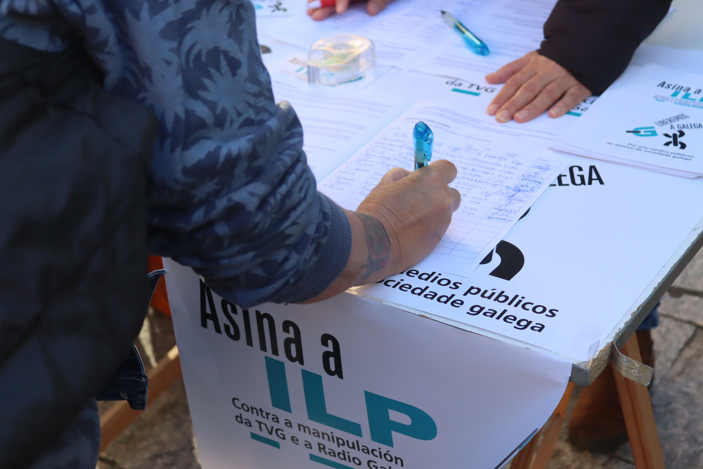 Precísanse un mínimo de 10.000 sinaturas, a recoller en catro meses, para que a Iniciativa Lexislativa Popular impulsada pola Plataforma “Por unha CRTVG ao Servizo do Pobo” entre a debate no Parlamento de Galiza. Porén, centos de galegas e galegos achegáronse xa esta tarde a rexistrar o seu apoio, o que confirma que a demanda de independencia e de pluralismo dos nosos medios públicos é un clamor popular.