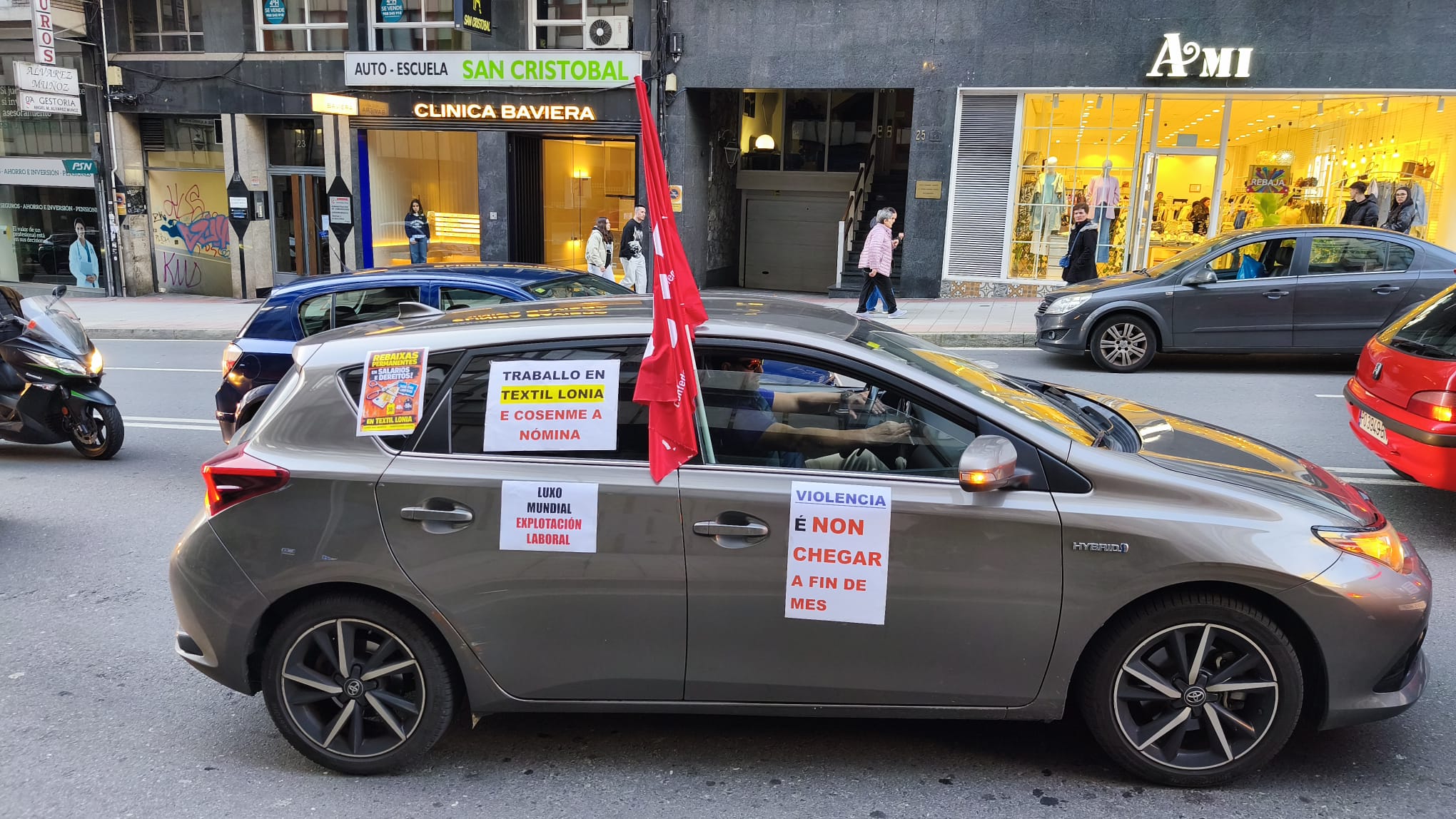 Este venres tivo lugar a segunda caravana de vehículos reivindicativa do persoal da empresa ourensá Sociedad Textil Lonia polas rúas da cidade de Ourense para reclamar melloras laborais e denunciar a ruptura das negociacións por parte dunha dirección que insiste en intentar criminalizar a loita das persoas traballadoras, tal e como sinalan dende a CIG.
