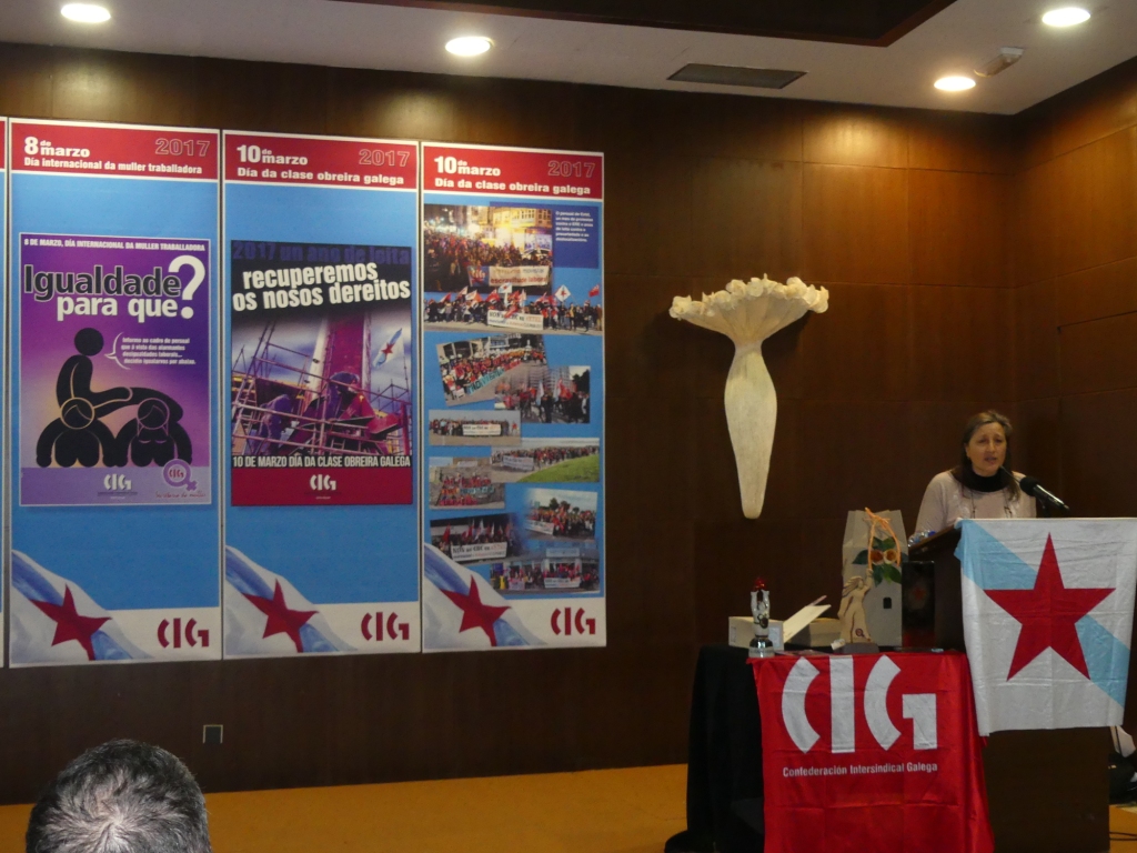 Por iso defendeu a necesidade de colectivizar esa problemática e darlle un pulo especial nunha data tan significativa para a central sindical como 10 de marzo. Problemática que “nos últimos anos se agudizou como consecuencia da crise e das numerosas contrarreformas que se fixeron por parte dos gobernos españois, tanto do PSOE como do PP, en materia de condicións laborais, prestacións por desemprego, de xornada, de negociación colectiva, pensións e demais”.