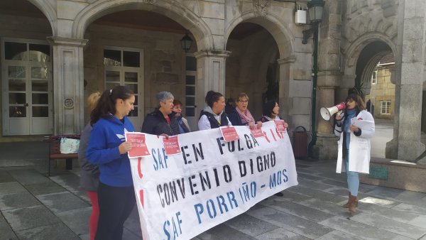 En consecuencia, a central sindical iniciou unha folga indefinida nos SAF de toda Galiza o pasado 2 de novembro, que está a ser secundada por un amplo número de traballadoras a pesar dos elevados servizos mínimos. Neste tempo as afectadas está a desenvolver tamén unha intensa campaña de mobilizacións, con concentracións, manifestacións a accións reivindicativas diarias en numerosas localidades do país, dando un auténtico exemplo de capacidade de loita e de dignidade obreira.