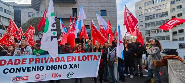 Mais tras 16 xuntanzas a patronal négase a reducir a xornada laboral, a pactar uns salarios que permitan recuperar a perda de poder adquisitivo e a introducir complementos por traballar domingos e festivos. En consecuencia, o persoal acordou en asemblea iniciar un calendario de protestas en distintas centros médicos privados o pasado mércores 20 de novembro. Hoxe tivo lugar unha nova concentración diante de Vithas Fátima en Vigo.