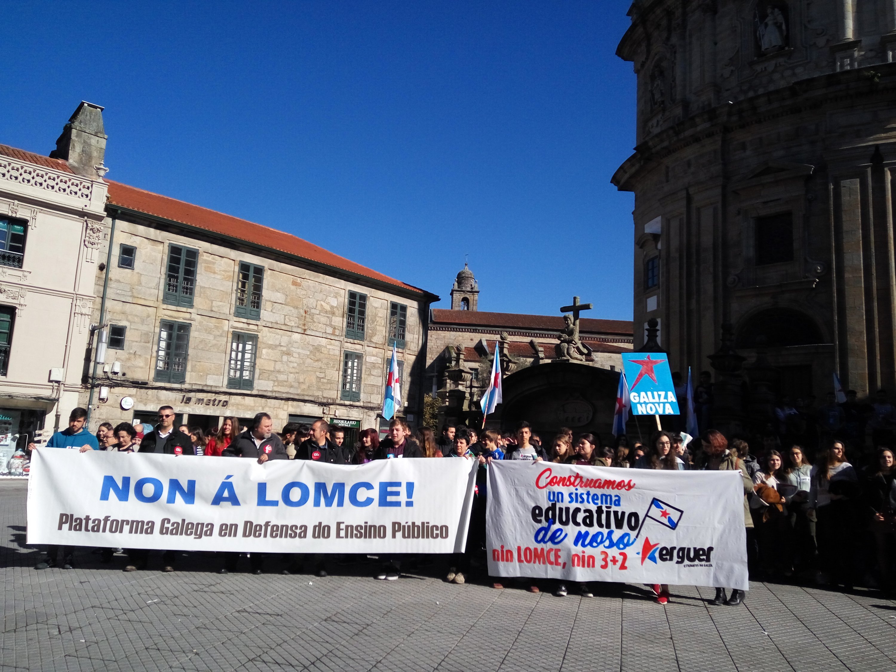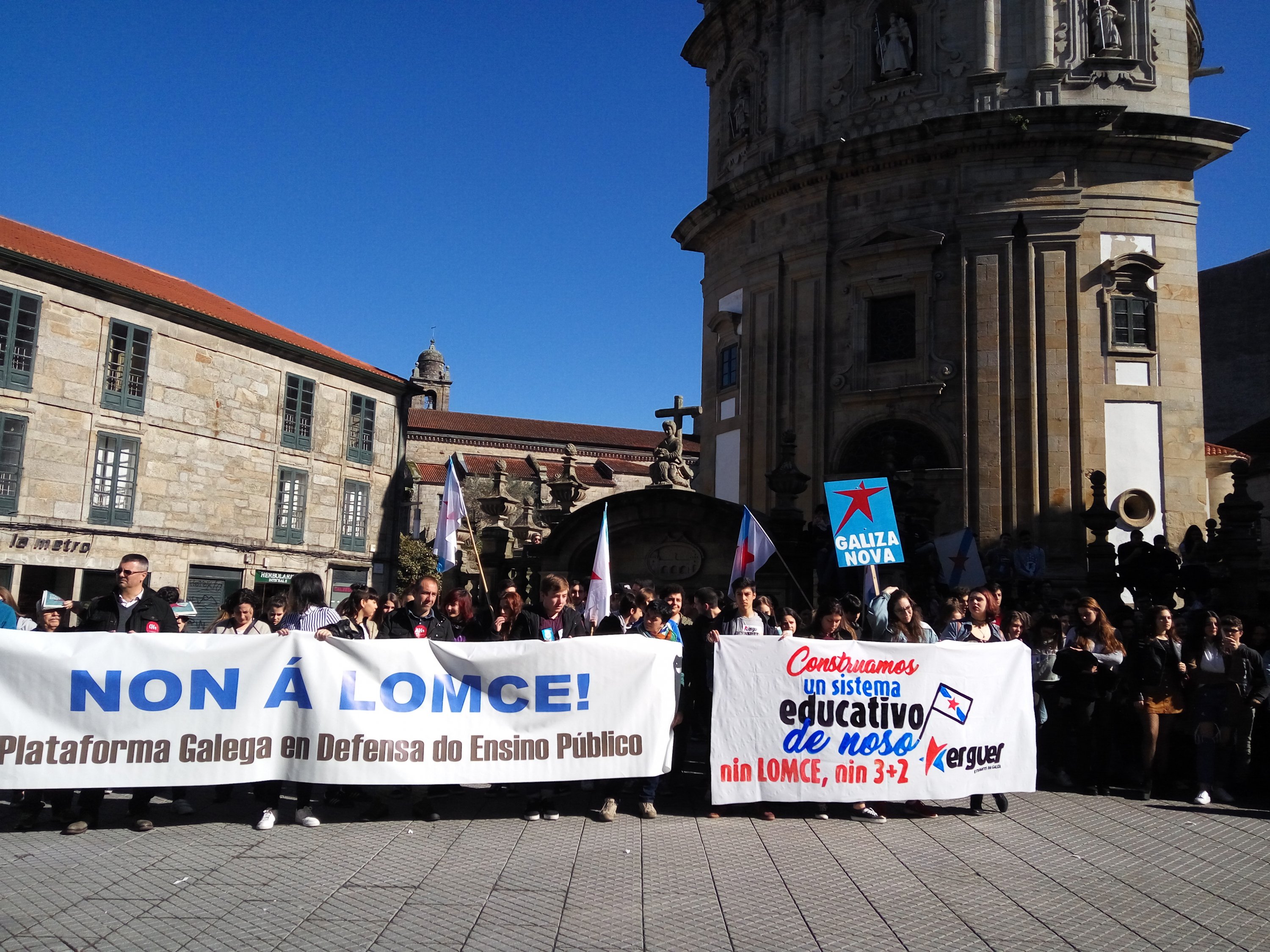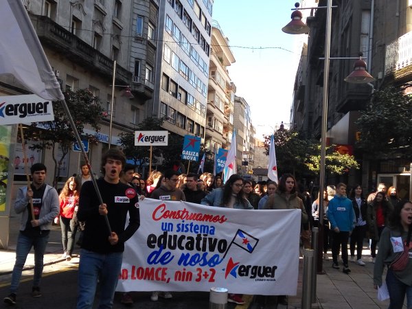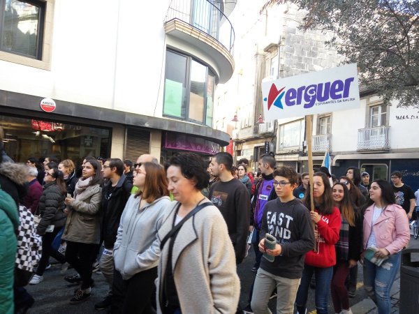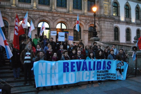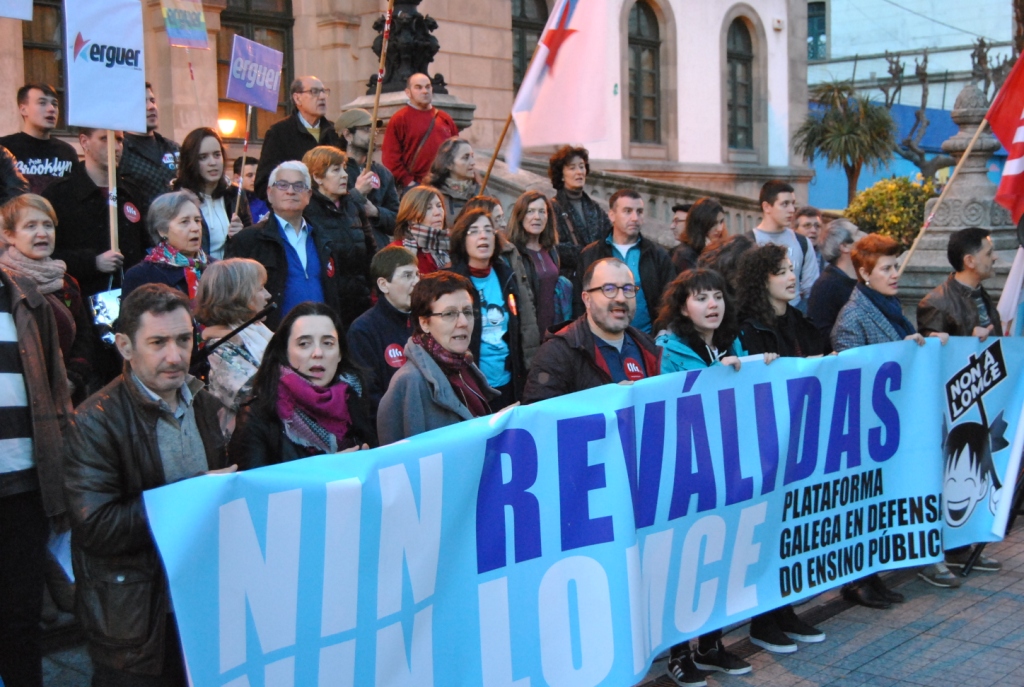 A Plataforma Galega en Defensa do Ensino Público, que apoiou a folga e as manifestacións convocadas pola organización estudantil ERGUER, celebrou a última hora desta tarde concentracións nas sete cidades e en vilas como Cangas, Cee, Carballo ou Vilagarcía. Toda unha serie de mobilizacións coas que exixiu a inmediata derrogación da LOMCE e a apertura dun diálogo con toda a comunidade educativa para elaborar unha nova lei que teña en conta as necesidades do sistema educativo.