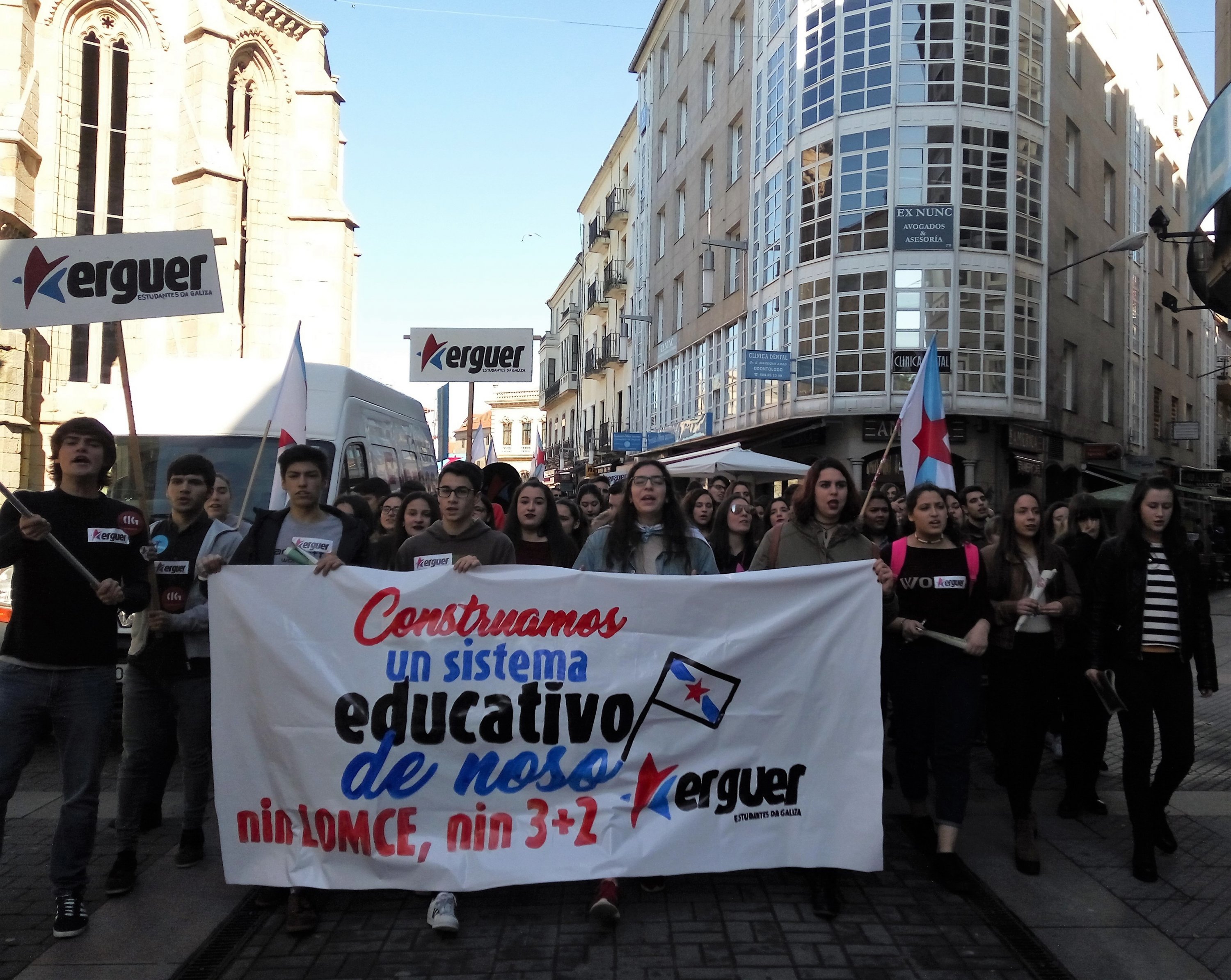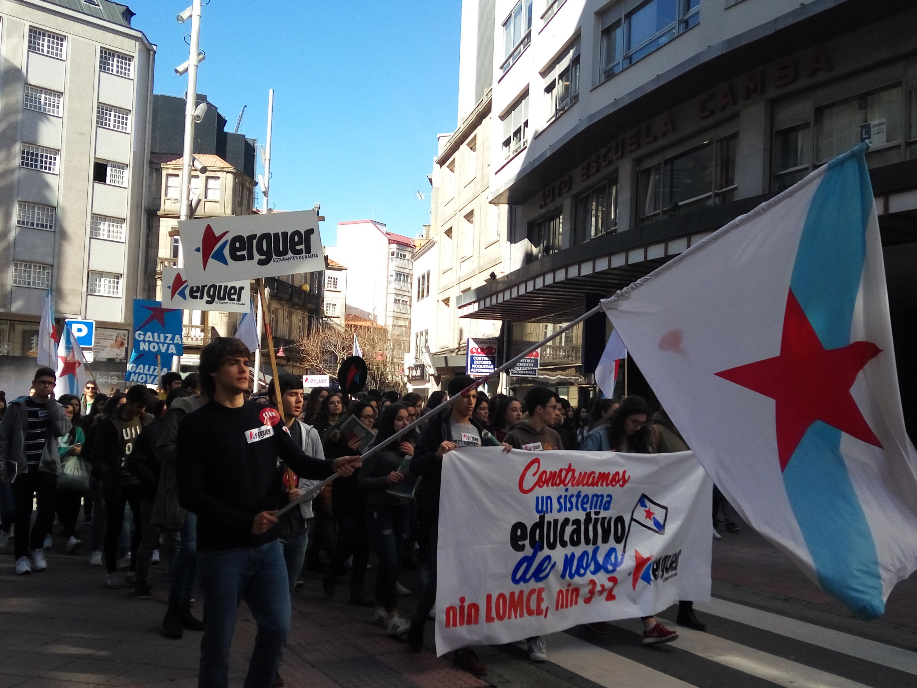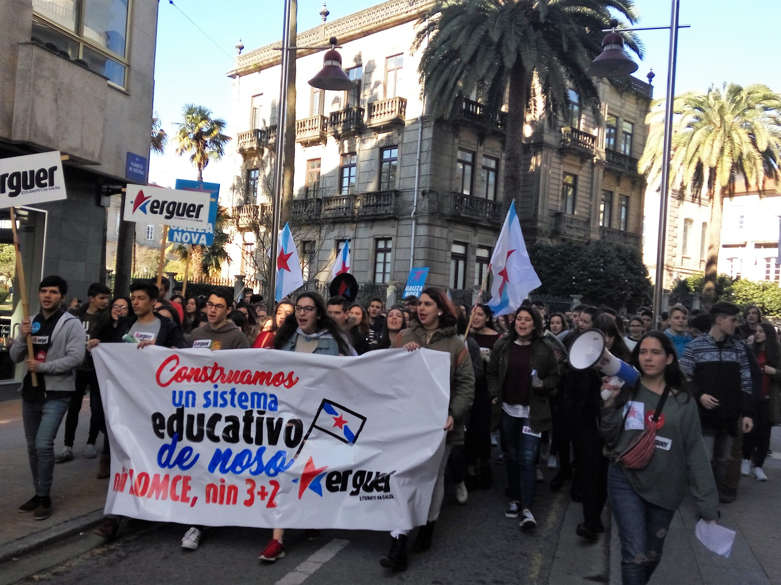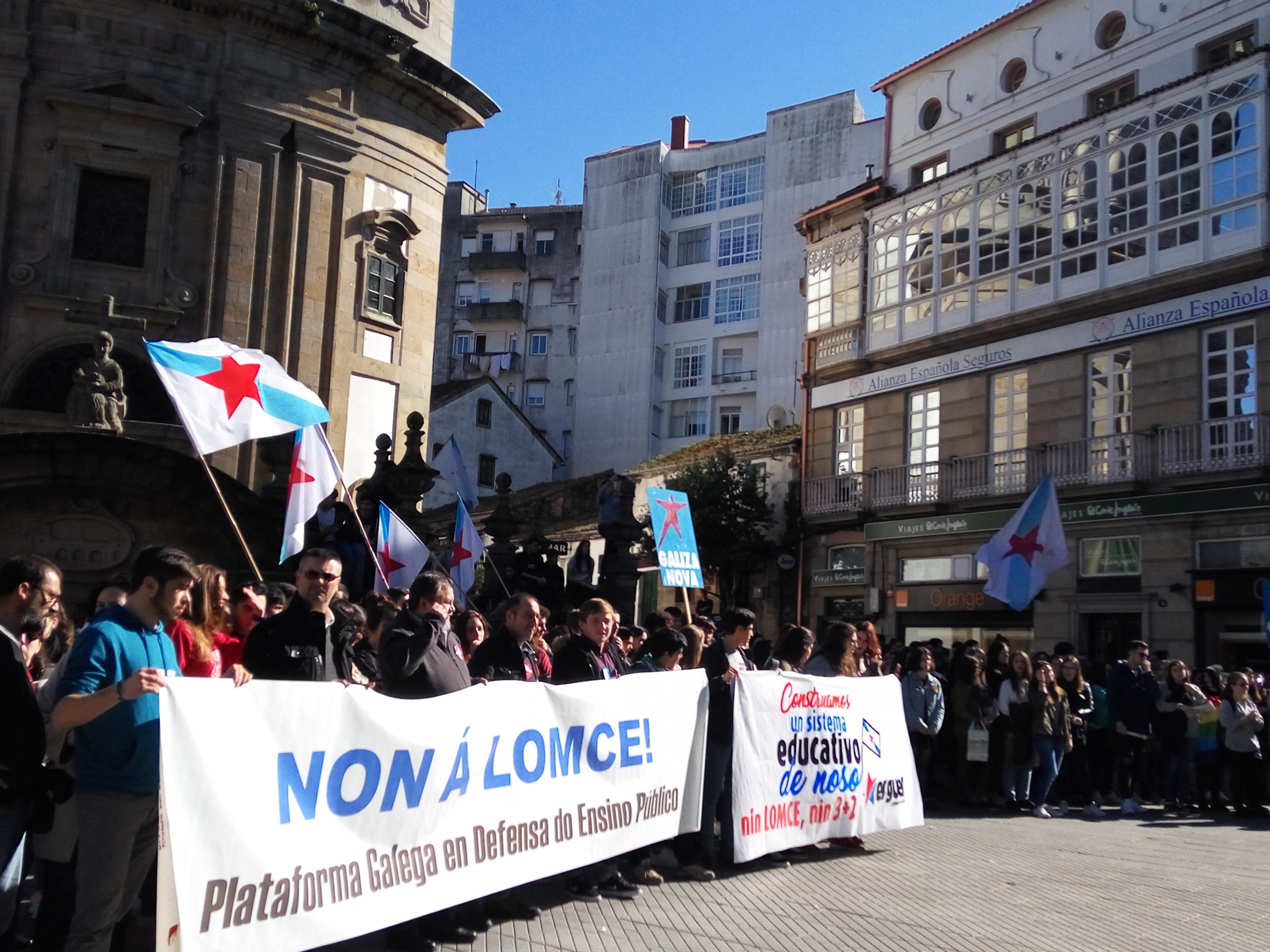 A Plataforma Galega en Defensa do Ensino Público, que apoiou a folga e as manifestacións convocadas pola organización estudantil ERGUER, celebrou a última hora desta tarde concentracións nas sete cidades e en vilas como Cangas, Cee, Carballo ou Vilagarcía. Toda unha serie de mobilizacións coas que exixiu a inmediata derrogación da LOMCE e a apertura dun diálogo con toda a comunidade educativa para elaborar unha nova lei que teña en conta as necesidades do sistema educativo.