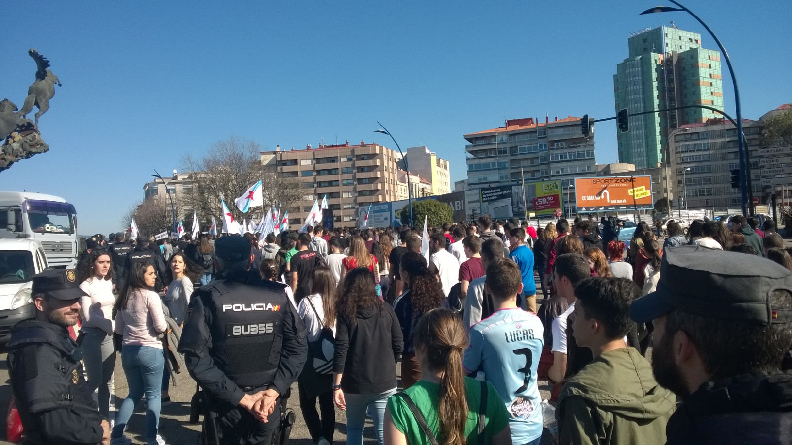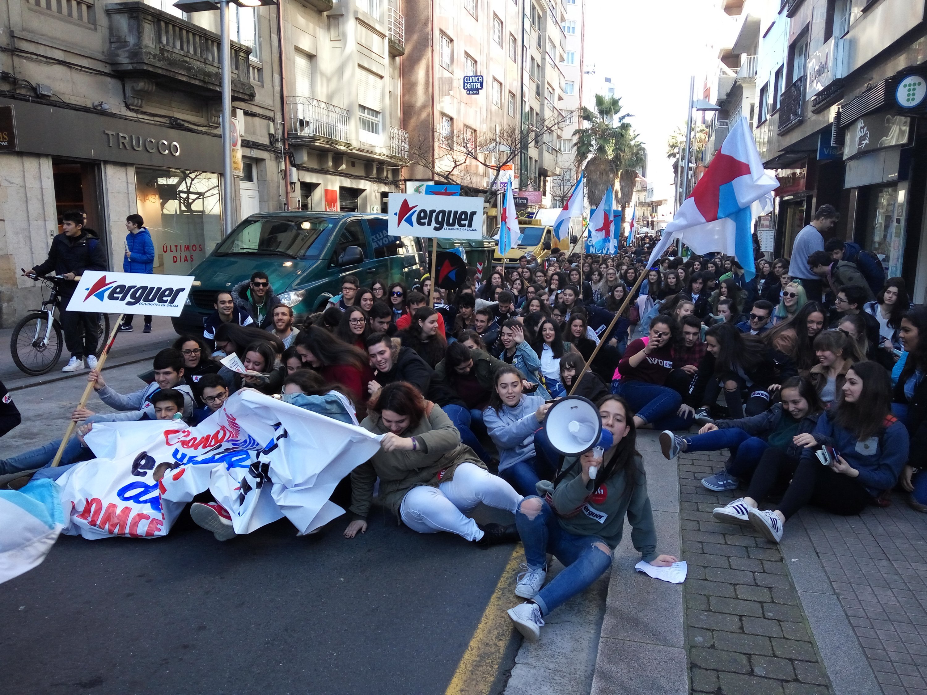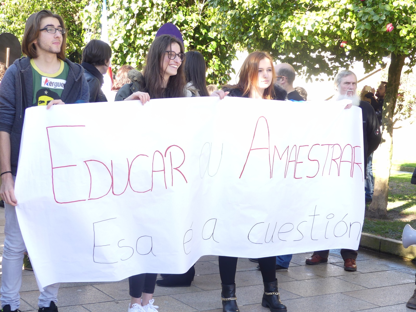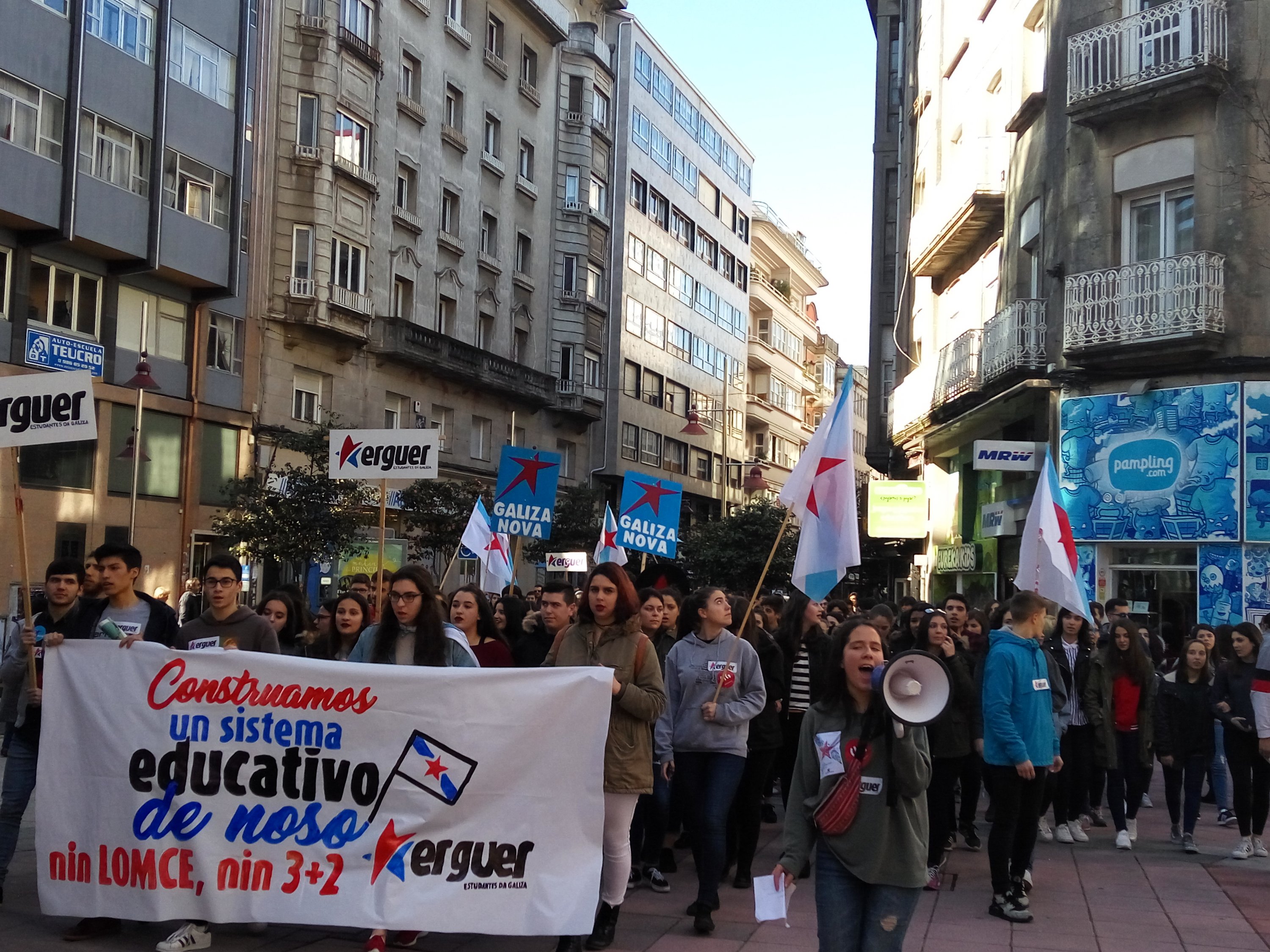 A Plataforma Galega en Defensa do Ensino Público, que apoiou a folga e as manifestacións convocadas pola organización estudantil ERGUER, celebrou a última hora desta tarde concentracións nas sete cidades e en vilas como Cangas, Cee, Carballo ou Vilagarcía. Toda unha serie de mobilizacións coas que exixiu a inmediata derrogación da LOMCE e a apertura dun diálogo con toda a comunidade educativa para elaborar unha nova lei que teña en conta as necesidades do sistema educativo.