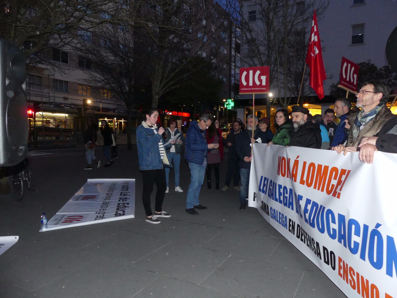 Na concentración celebrada en Compostela, o portavoz da plataforma e secretario nacional da CIG-Ensino, Anxo Louzao, denunciou que malia a “os anuncios propagandísticos” do goberno do PP, “nin se derrogou a LOMCE, nin se derrogaron as reválidas”. Advertiu que o único que se fixo polo momento, pola presión das mobilizacións, foi adiar as reválidas e que, en todo caso, “as novas PAUS son unha mostra do desprezo do Ministerio de Educación e da Consellaría de educación cara o profesorado e o alumnado” que non coñeceu o seu contido até o segundo trimestre do curso.