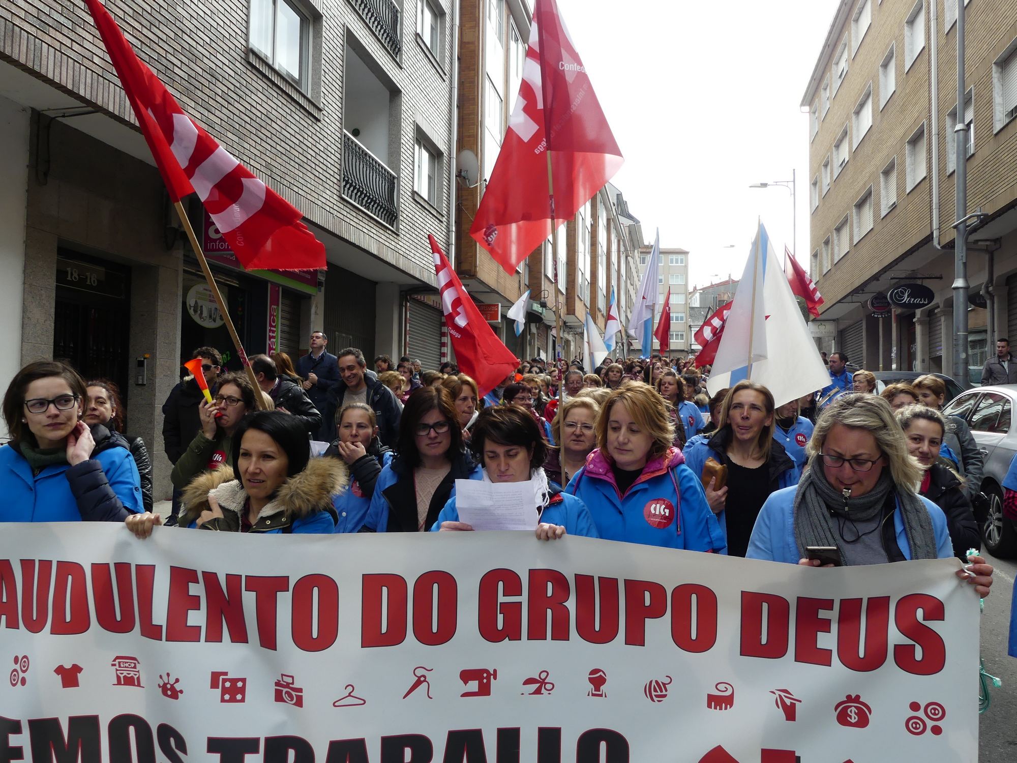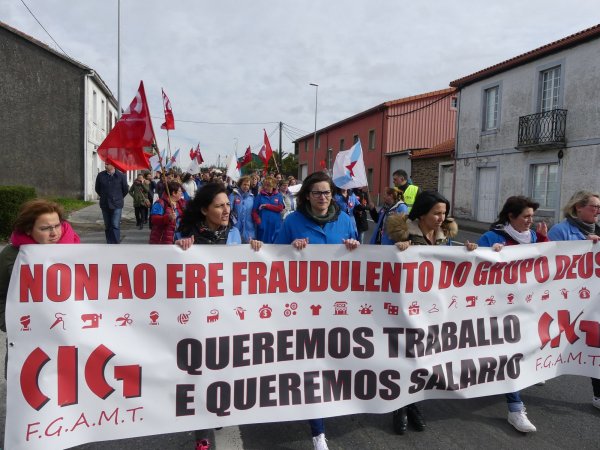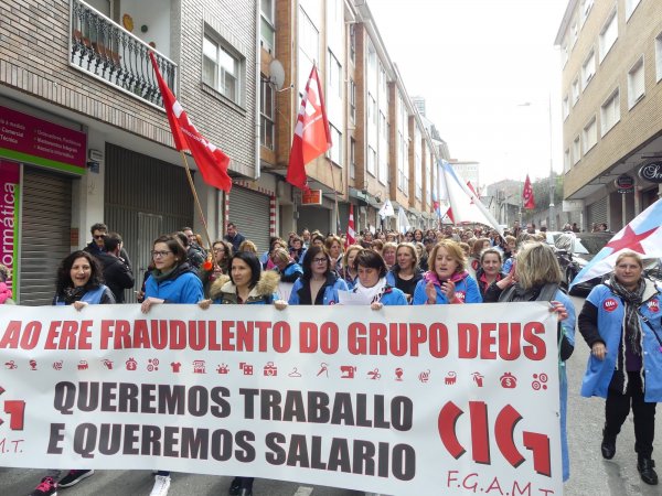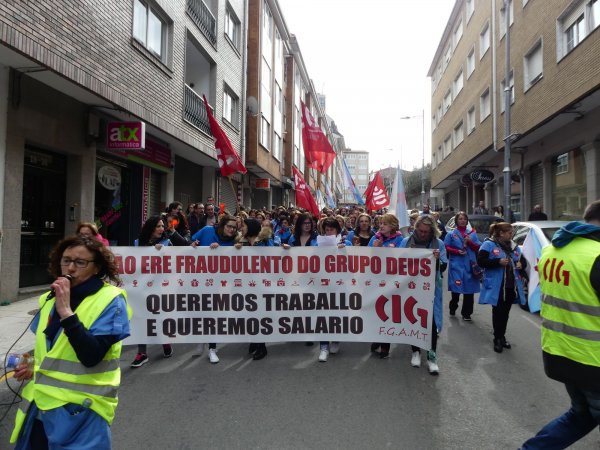 Case un mes despois de iniciar folga, as traballadoras de Grupo Deus volvían marchar este mércores polas rúas de Ordes para denunciar os 103 despedimentos e o impago dos salarios, que xa acada as seis mensualidades. Aínda que a folga continúa, esta é a última manifestación que as traballadoras van realizar pola vila, xa que o luns 3 de abril faranse efectivos todos os despedimentos. Porén, advertiron que a loita non remata pois "por dereito, temos moito que esixir ".