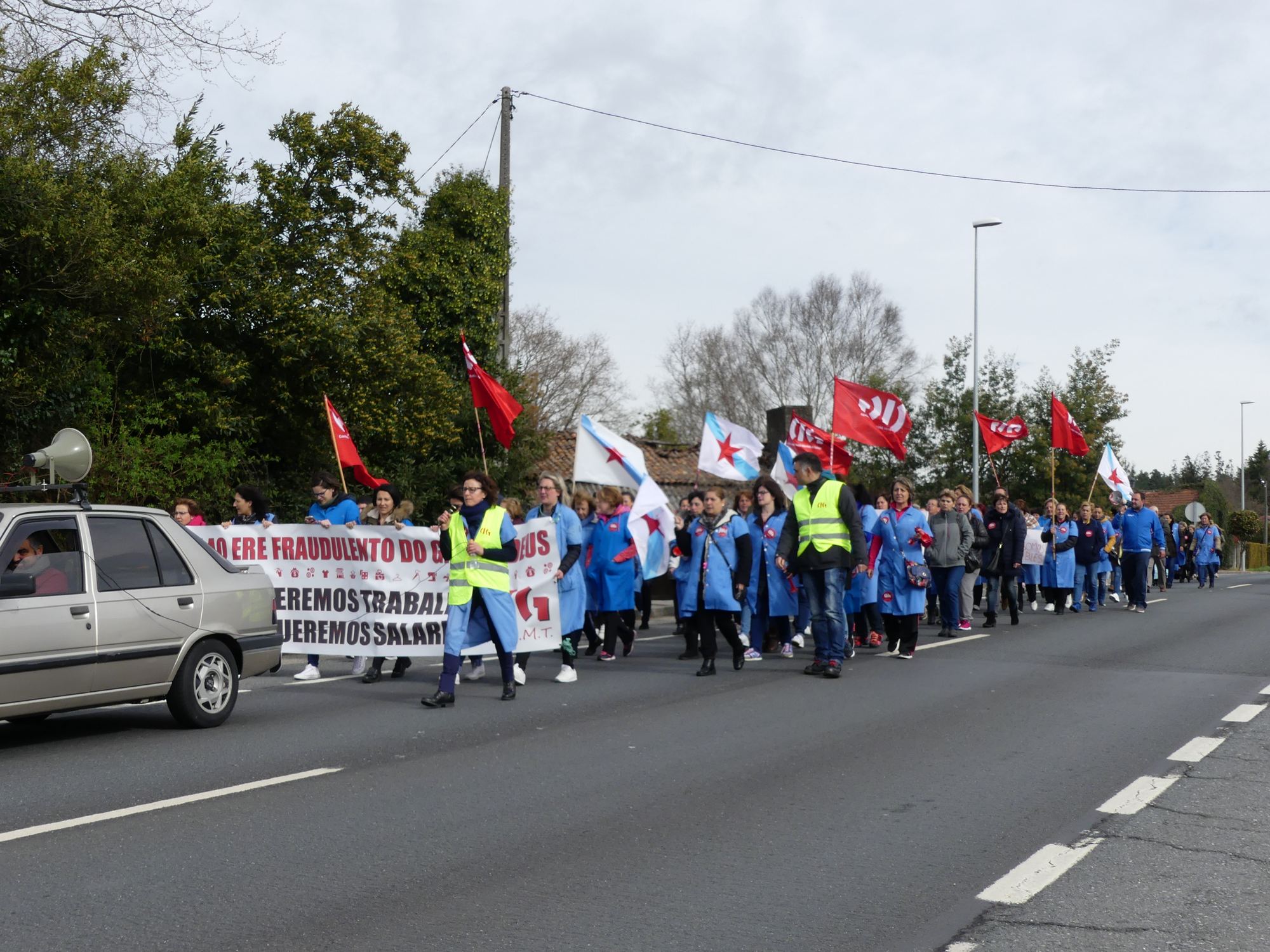 Porén, "a partir do día 3 nin moito menos se pode dar por rematado o conflito, a guerra seguirá nos xulgados porque, grazas a reforma laboral, as traballadoras terán que acudir á xustiza para reclamar o seu dereito lexítimo a manter o emprego, a cobrar os salarios e a indemnización que legalmente lle corresponde polo despedimento", aseveraba Dores Martínez ao remate da marcha a pé.