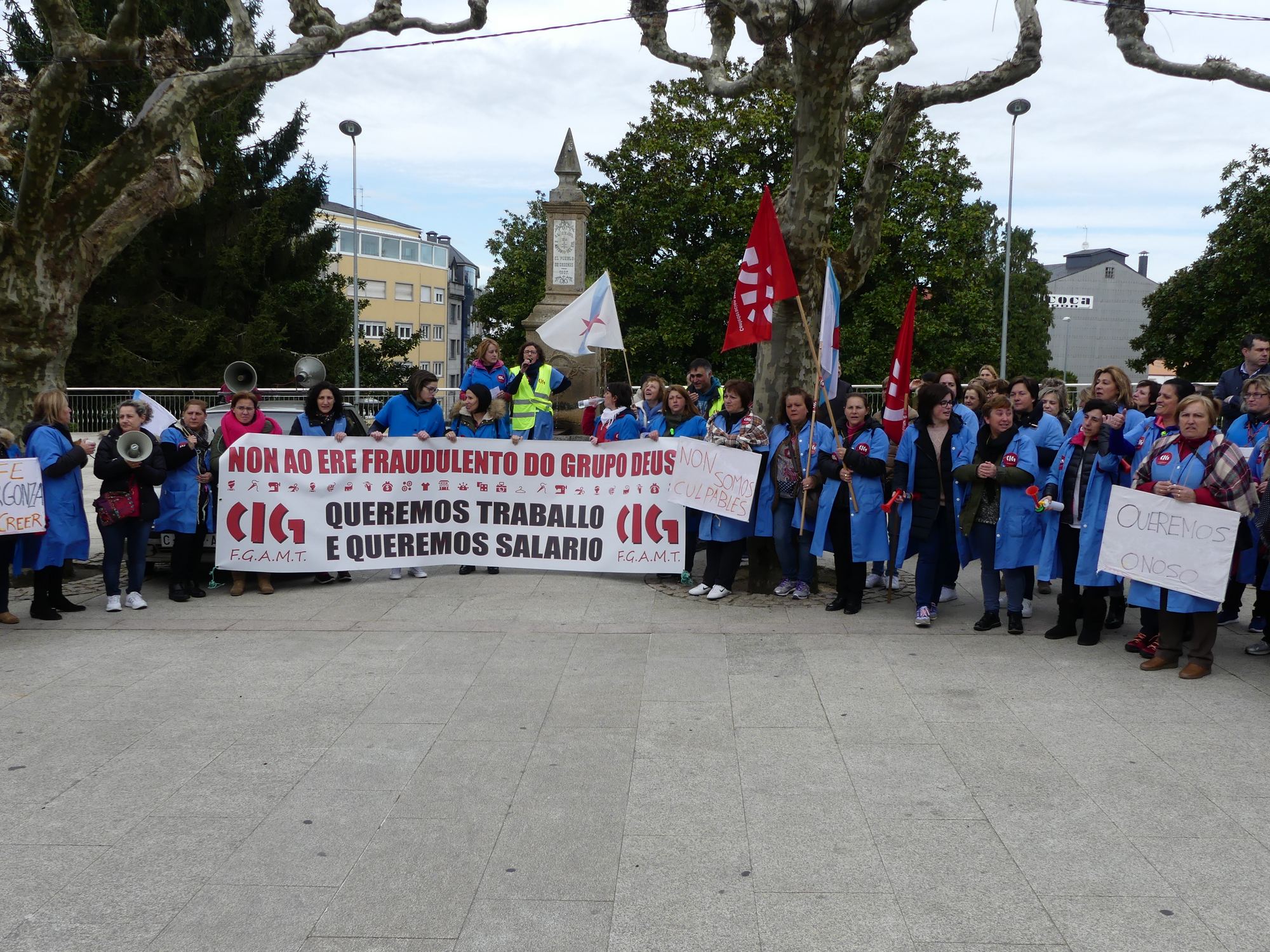 A Secretaria da FGAMT-CIG destacou que a desfeita laboral no Grupo Deus hai non é unha situación illada na comarca. Ao drama destes 103 despedimentos, subliñou, hai que engadir os despedimentos en Viriato, Téxtil Mendo, Senla Punto, Cosurona ou Corpiño Téxtil. "Esta comarca precisa dun proxecto de reindustrialización para absorber toda esa man de obra máis que profesional do sector do téxtil, que a día de hoxe non ten un posto de traballo alternativo", demandou.