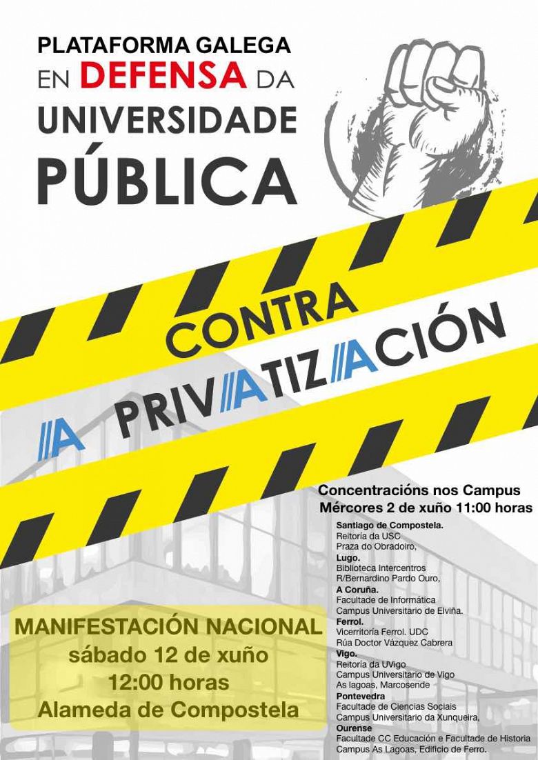 Mobilizacións ás que chamou a participar a sociedade galega para que responda “diante do que vai ser un enorme problema de cara ao futuro se finalmente se perpetra este roubo á universidade pública do país”.