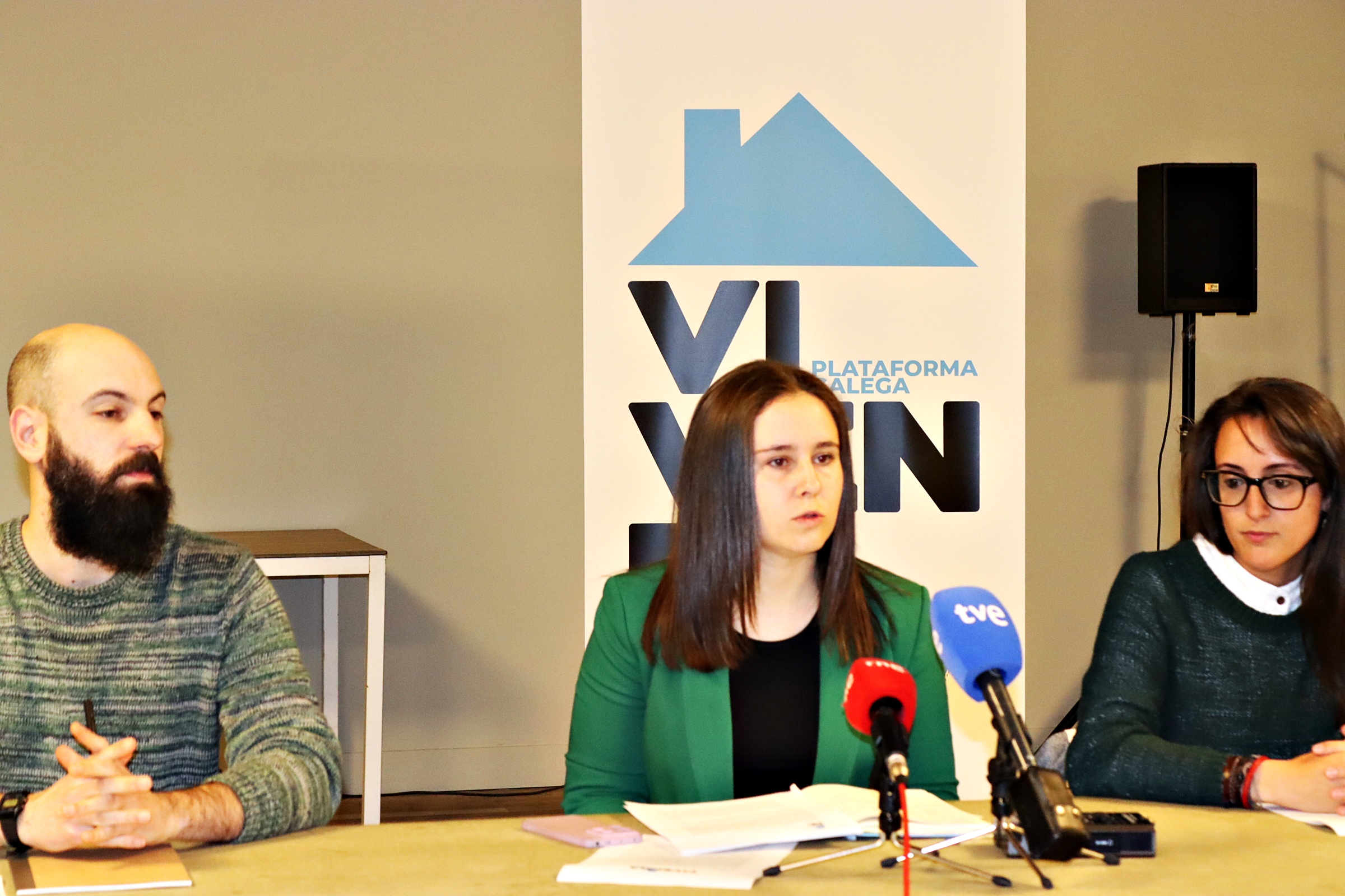 A plataforma, representada por Iria Nande, Andrés López e María Curra, presentou esta mañá os seus obxectivos, o seu manifesto fundacional e máis a táboa reivindicativa. No seu manifesto destaca como prioritario o de conseguir un programa de vivendas públicas con prezo taxado que garanta o acceso a vivendas dignas para toda a cidadanía.