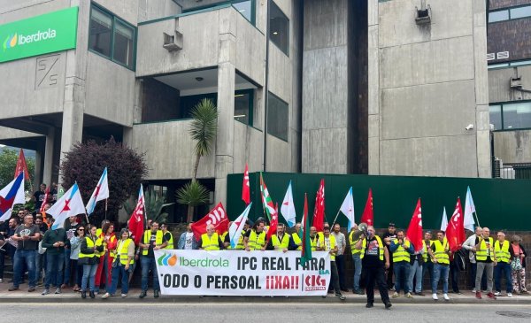 O práctica totalidade do persoal operario galego de Iberdrola secundou hoxe a folga convocada por ELA, CCOO e UGT en demanda dun convenio colectivo digno, xornada que a CIG-Industria aproveitou para desenvolver unha concentración diante da sede da compañía na Rúa de Valdeorras para reclamar a recuperación do poder adquisitivo, vinculando a revisión salarial ao IPC, e polo mantemento do emprego no noso país.