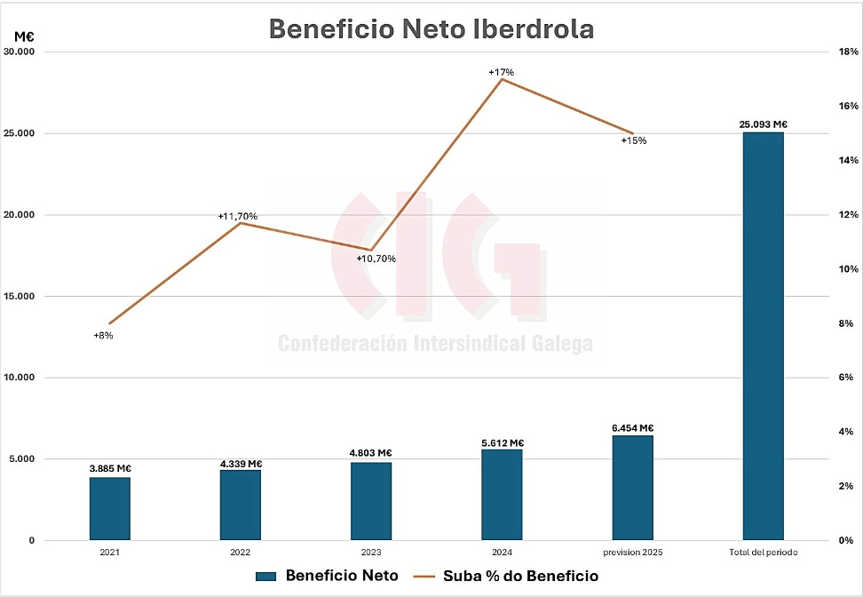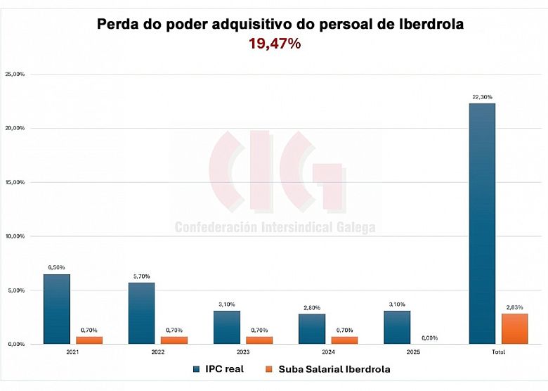 A representación da CIG en Iberdrola continúa coas accións para reverter a enorme perda de poder adquisitivo que sofre o persoal de Iberdrola (que xa acumula un 19% de deterioro salarial) e a perda de postos de traballo en Galiza, nun momento ademais no que a compañía enerxética bate récord de beneficios ano tras ano.